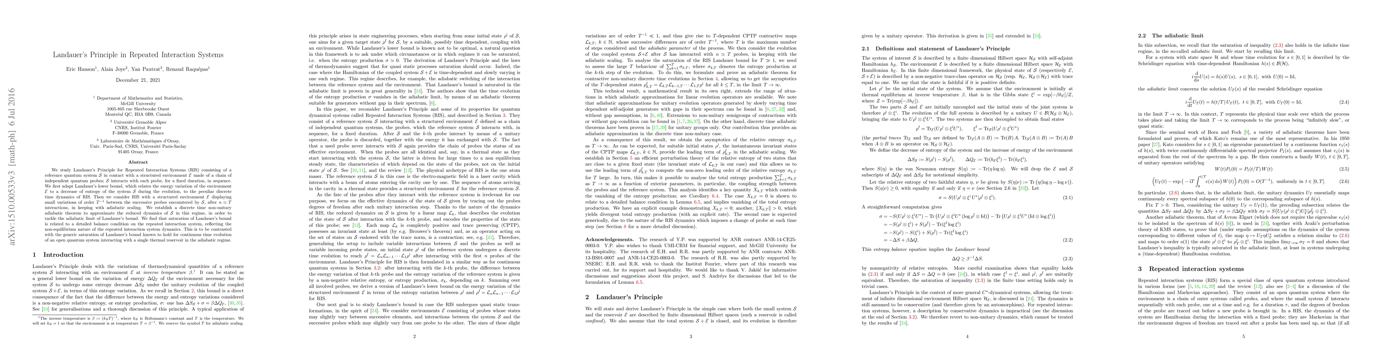 This paper investigates Landauer's Principle in Repeated Interaction Systems (RIS), adapting the principle to the discrete time dynamics of RIS and establishing a non-unitary adiabatic theorem. It finds that saturation of Landauer's bound in RIS requires a detailed balance condition, contrasting with the continuous time dynamics where generic saturation occurs.