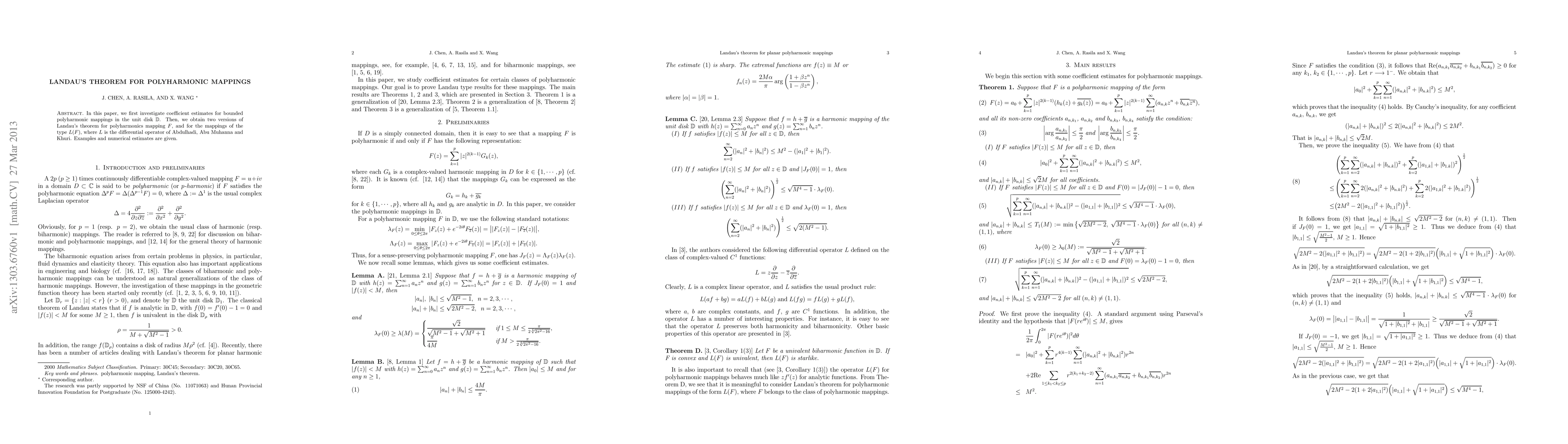 In this paper, we first investigate coefficient estimates for bounded polyharmonic mappings in the unit disk $\mathbb{D}$. Then, we obtain two versions of Landau's theorem for polyharmonics mapping $F$, and for the mappings of the type $L(F)$, where $L$ is the differential operator of Abdulhadi, Abu Muhanna and Khuri. Examples and numerical estimates are given.