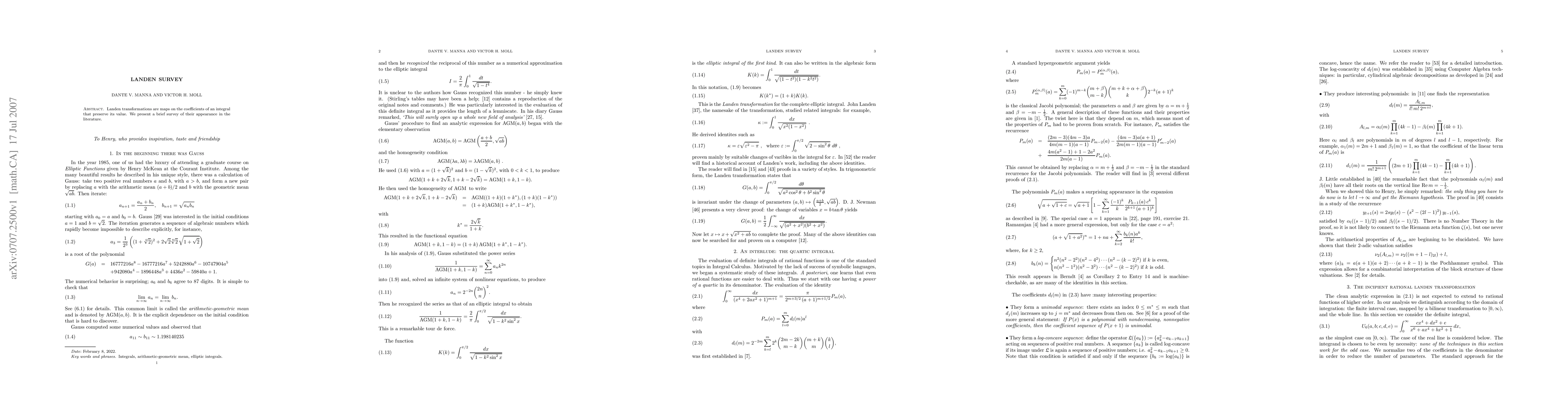This paper surveys Landen transformations, maps on integral coefficients that preserve value, highlighting their appearance in literature. The study provides a brief overview of key findings and implications for the field.