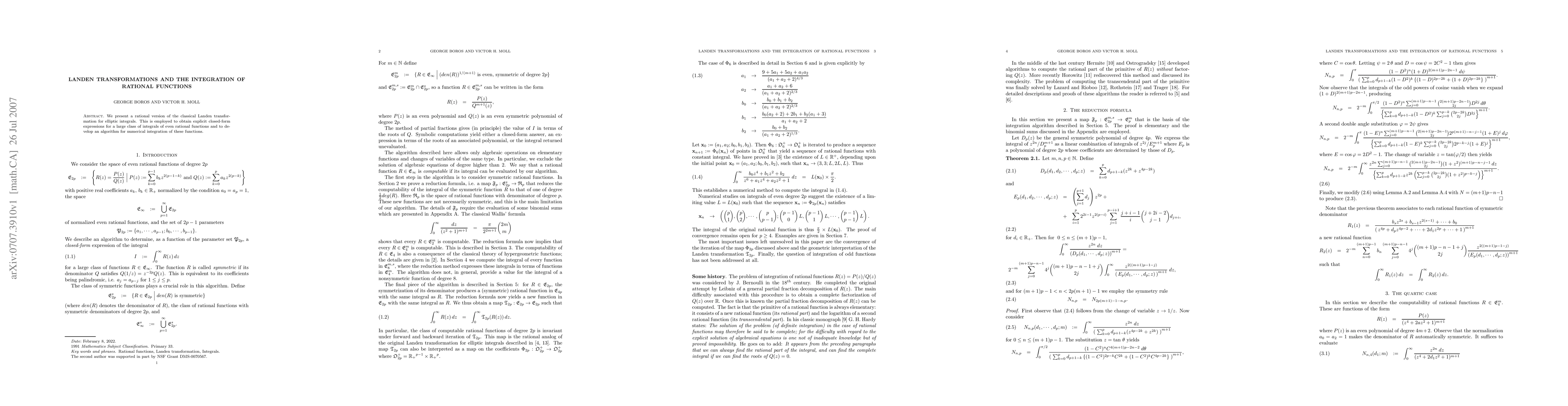 Summary: This paper introduces a rational Landen transformation for elliptic integrals, enabling explicit closed-form solutions for integrals of even rational functions and developing an algorithm for their numerical integration.