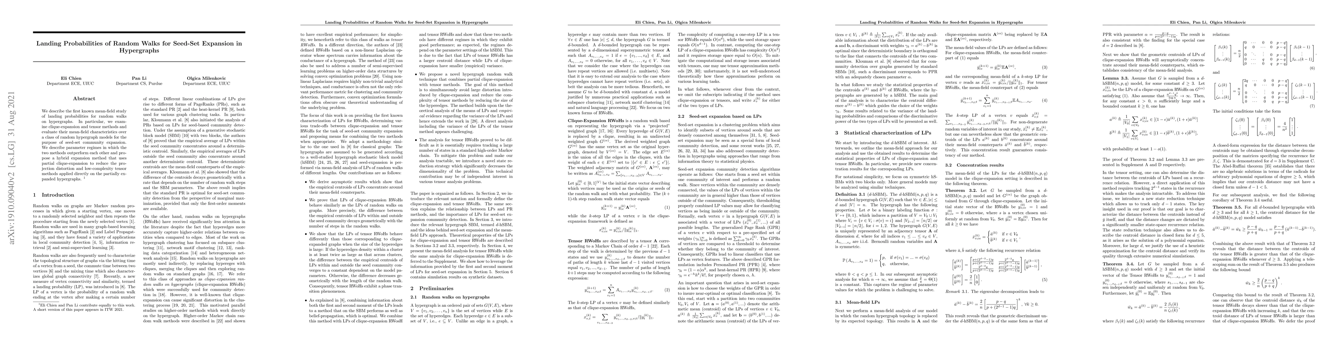 We describe the first known mean-field study of landing probabilities for random walks on hypergraphs. In particular, we examine clique-expansion and tensor methods and evaluate their mean-field characteristics over a class of random hypergraph models for the purpose of seed-set community expansion. We describe parameter regimes in which the two methods outperform each other and propose a hybrid expansion method that uses partial clique-expansion to reduce the projection distortion and low-complexity tensor methods applied directly on the partially expanded hypergraphs.