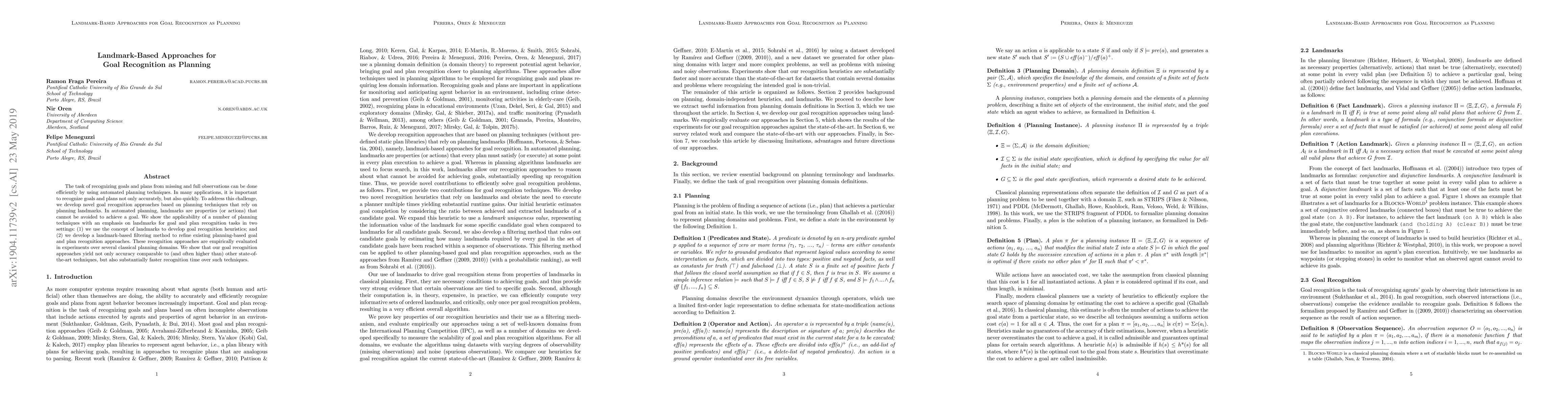 This paper proposes novel goal recognition methods using planning landmarks, which are unavoidable properties or actions in planning, to enhance both accuracy and speed. The methods include landmark-based heuristics and a filtering approach, demonstrating better performance than existing techniques in classical planning domains.