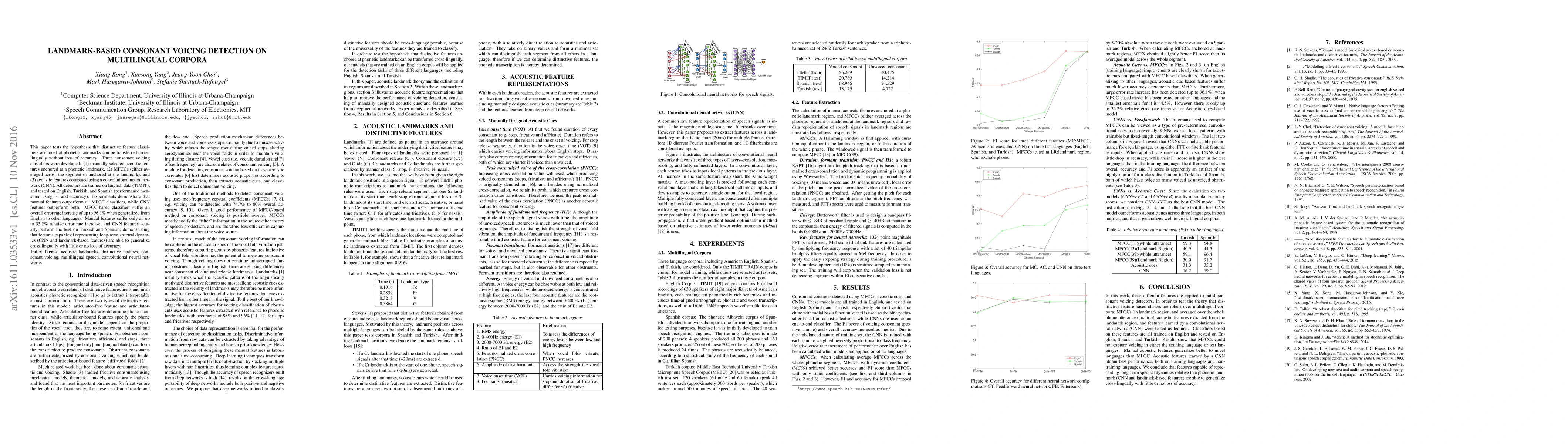 A study finds that consonant voicing detection can be accurately performed across languages using manual features or convolutional neural networks anchored at phonetic landmarks. Cross-lingual accuracy is maintained with little loss of performance.