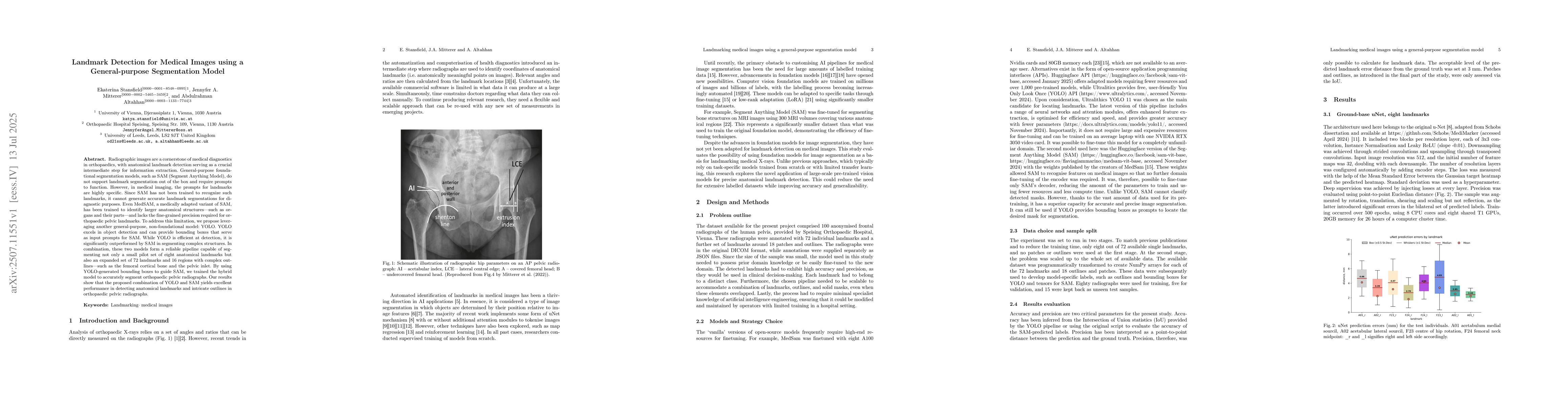 Radiographic images are a cornerstone of medical diagnostics in orthopaedics, with anatomical landmark detection serving as a crucial intermediate step for information extraction. General-purpose foundational segmentation models, such as SAM (Segment Anything Model), do not support landmark segmentation out of the box and require prompts to function. However, in medical imaging, the prompts for landmarks are highly specific. Since SAM has not been trained to recognize such landmarks, it cannot generate accurate landmark segmentations for diagnostic purposes. Even MedSAM, a medically adapted variant of SAM, has been trained to identify larger anatomical structures, such as organs and their parts, and lacks the fine-grained precision required for orthopaedic pelvic landmarks. To address this limitation, we propose leveraging another general-purpose, non-foundational model: YOLO. YOLO excels in object detection and can provide bounding boxes that serve as input prompts for SAM. While YOLO is efficient at detection, it is significantly outperformed by SAM in segmenting complex structures. In combination, these two models form a reliable pipeline capable of segmenting not only a small pilot set of eight anatomical landmarks but also an expanded set of 72 landmarks and 16 regions with complex outlines, such as the femoral cortical bone and the pelvic inlet. By using YOLO-generated bounding boxes to guide SAM, we trained the hybrid model to accurately segment orthopaedic pelvic radiographs. Our results show that the proposed combination of YOLO and SAM yields excellent performance in detecting anatomical landmarks and intricate outlines in orthopaedic pelvic radiographs.