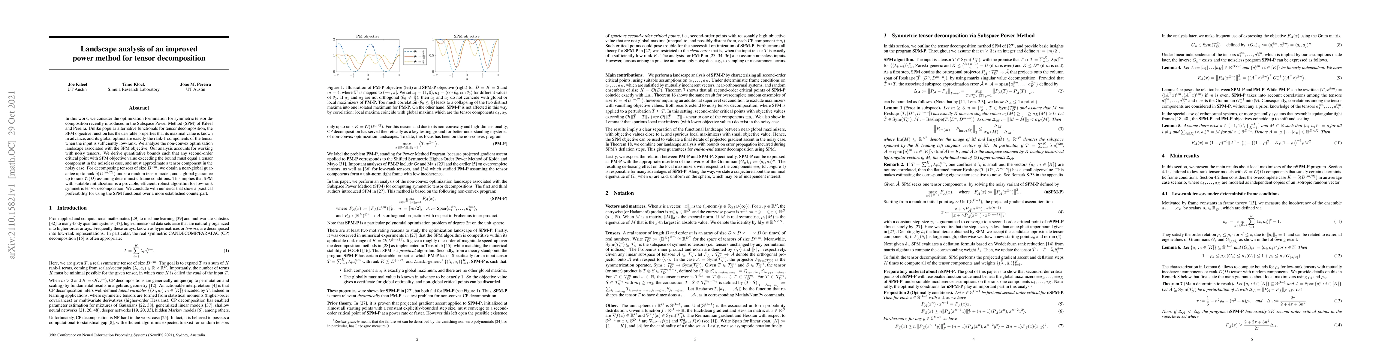 A new power method for tensor decomposition is analyzed for its optimization landscape, showing a provable guarantee for efficient and robust low-rank symmetric tensor decomposition with suitable initialization.