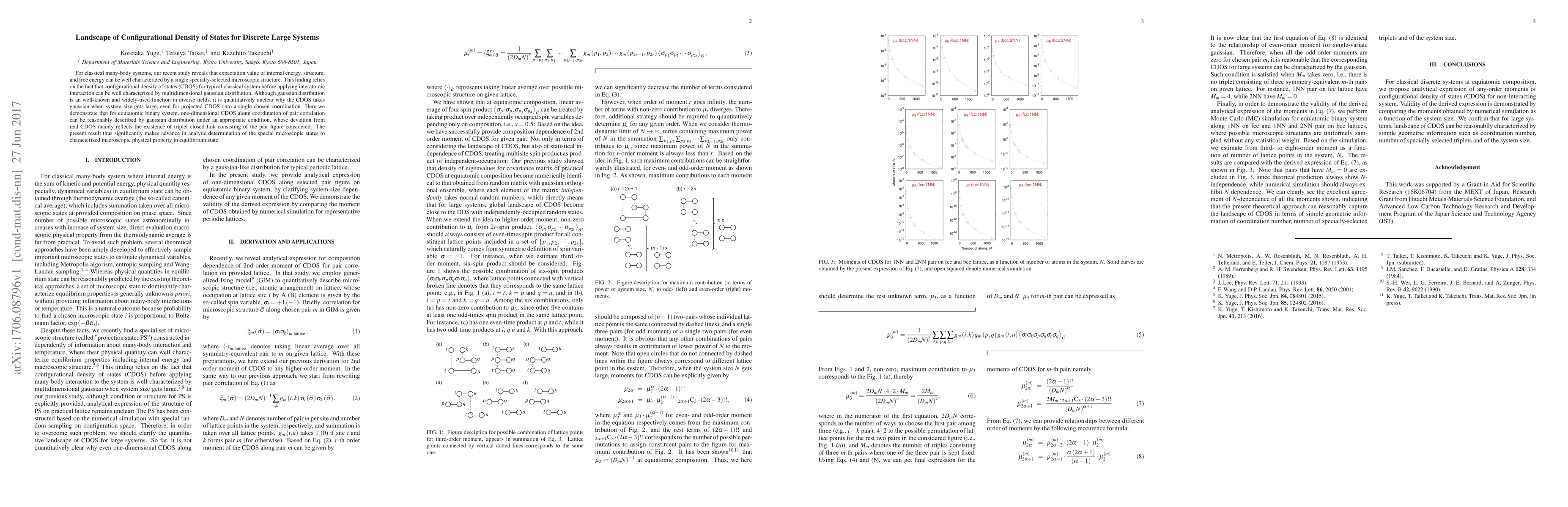 This study demonstrates that the configurational density of states (CDOS) for large classical many-body systems can be approximated by a multidimensional Gaussian distribution, providing a new analytical method to characterize macroscopic physical properties through specific microscopic structures. The Gaussian approximation is shown to be valid for equiatomic binary systems, with deviations primarily due to triplet closed links.