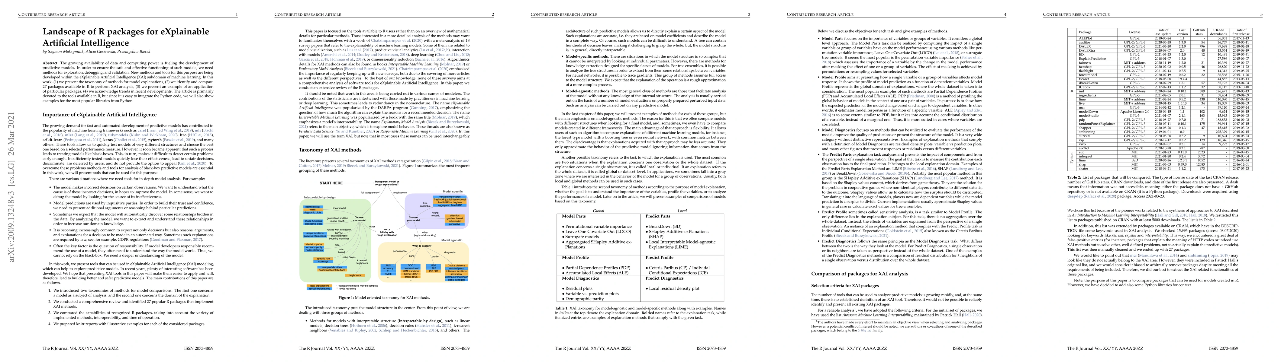 A study explores 27 R packages for Explainable Artificial Intelligence (XAI), providing a taxonomy of methods and examples of applications, to help ensure the safe use of predictive models.