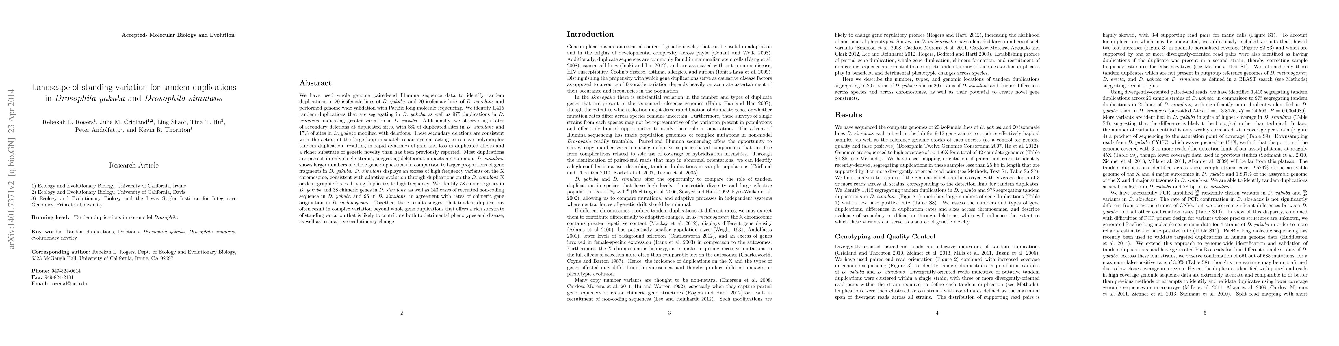 This study identifies and validates tandem duplications in 20 isofemale lines each of D. yakuba and D. simulans, revealing greater variation in D. yakuba. It finds high rates of secondary deletions, suggesting a dynamic process of gain and loss in duplicated alleles, and identifies numerous chimeric genes and recruited non-coding sequences, indicating complex variation that may contribute to both adaptive evolution and disease.