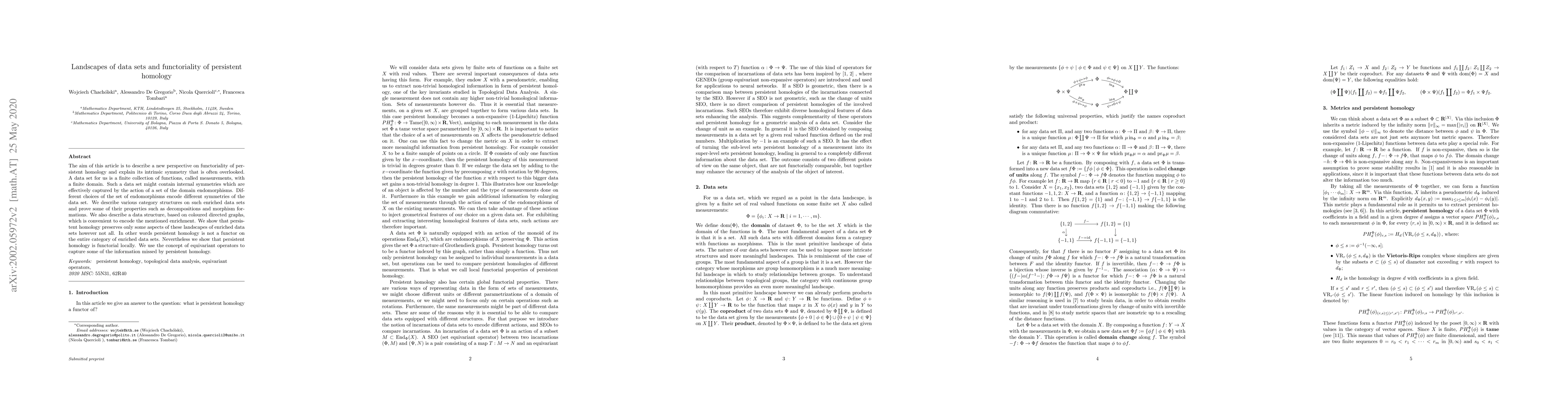 The aim of this article is to describe a new perspective on functoriality of persistent homology and explain its intrinsic symmetry that is often overlooked. A data set for us is a finite collection of functions, called measurements, with a finite domain. Such a data set might contain internal symmetries which are effectively captured by the action of a set of the domain endomorphisms. Different choices of the set of endomorphisms encode different symmetries of the data set. We describe various category structures on such enriched data sets and prove some of their properties such as decompositions and morphism formations. We also describe a data structure, based on coloured directed graphs, which is convenient to encode the mentioned enrichment. We show that persistent homology preserves only some aspects of these landscapes of enriched data sets however not all. In other words persistent homology is not a functor on the entire category of enriched data sets. Nevertheless we show that persistent homology is functorial locally. We use the concept of equivariant operators to capture some of the information missed by persistent homology.