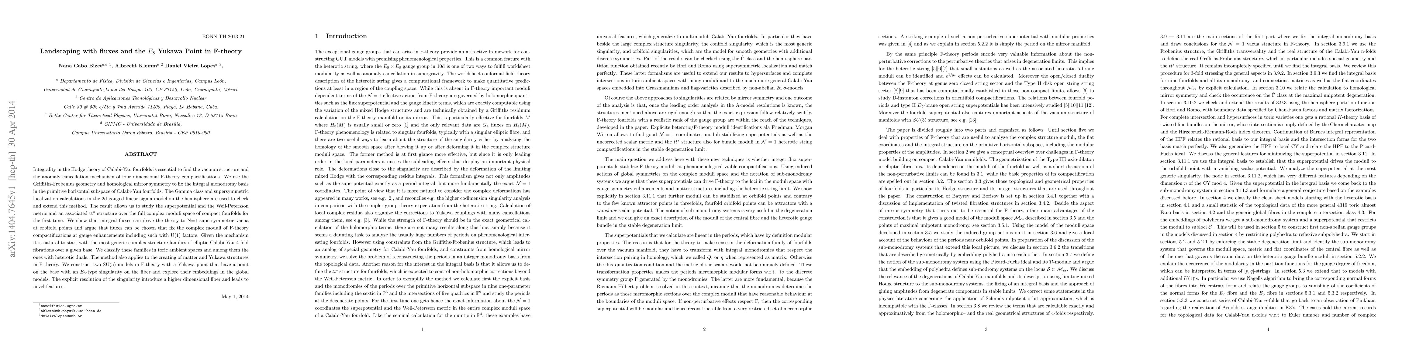 Integrality in the Hodge theory of Calabi-Yau fourfolds is essential to find the vacuum structure and the anomaly cancellation mechanism of four dimensional F-theory compactifications. We use the Griffiths-Frobenius geometry and homological mirror symmetry to fix the integral monodromy basis in the primitive horizontal subspace of Calabi-Yau fourfolds. The Gamma class and supersymmetric localization calculations in the 2d gauged linear sigma model on the hemisphere are used to check and extend this method. The result allows us to study the superpotential and the Weil-Petersson metric and an associated tt* structure over the full complex moduli space of compact fourfolds for the first time. We show that integral fluxes can drive the theory to N=1 supersymmetric vacua at orbifold points and argue that fluxes can be chosen that fix the complex moduli of F-theory compactifications at gauge enhancements including such with U(1) factors. Given the mechanism it is natural to start with the most generic complex structure families of elliptic Calabi-Yau 4-fold fibrations over a given base. We classify these families in toric ambient spaces and among them the ones with heterotic duals. The method also applies to the creating of matter and Yukawa structures in F-theory. We construct two SU(5) models in F-theory with a Yukawa point that have a point on the base with an $E_8$-type singularity on the fiber and explore their embeddings in the global models. The explicit resolution of the singularity introduce a higher dimensional fiber and leads to novel features.