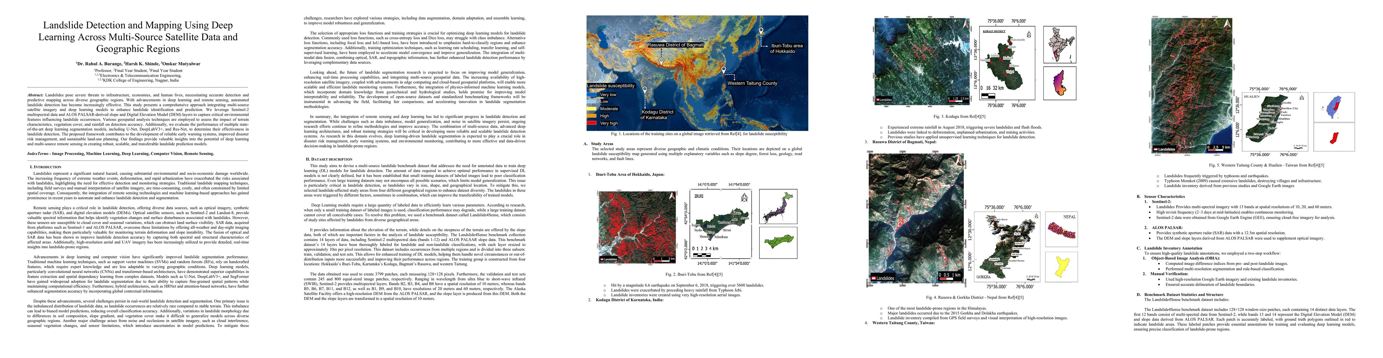 Landslides pose severe threats to infrastructure, economies, and human lives, necessitating accurate detection and predictive mapping across diverse geographic regions. With advancements in deep learning and remote sensing, automated landslide detection has become increasingly effective. This study presents a comprehensive approach integrating multi-source satellite imagery and deep learning models to enhance landslide identification and prediction. We leverage Sentinel-2 multispectral data and ALOS PALSAR-derived slope and Digital Elevation Model (DEM) layers to capture critical environmental features influencing landslide occurrences. Various geospatial analysis techniques are employed to assess the impact of terra in characteristics, vegetation cover, and rainfall on detection accuracy. Additionally, we evaluate the performance of multiple stateof-the-art deep learning segmentation models, including U-Net, DeepLabV3+, and Res-Net, to determine their effectiveness in landslide detection. The proposed framework contributes to the development of reliable early warning systems, improved disaster risk management, and sustainable land-use planning. Our findings provide valuable insights into the potential of deep learning and multi-source remote sensing in creating robust, scalable, and transferable landslide prediction models.