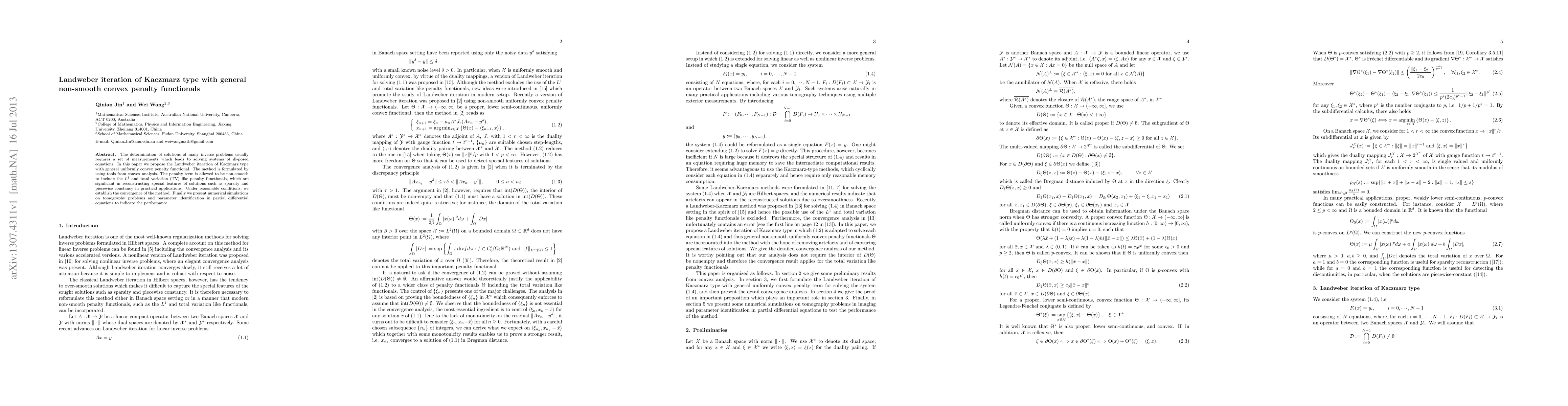 A new method is proposed for solving inverse problems with general non-smooth convex penalty functionals, allowing for the use of $L^1$ and total variation penalties that promote sparsity and piecewise constancy in solutions.