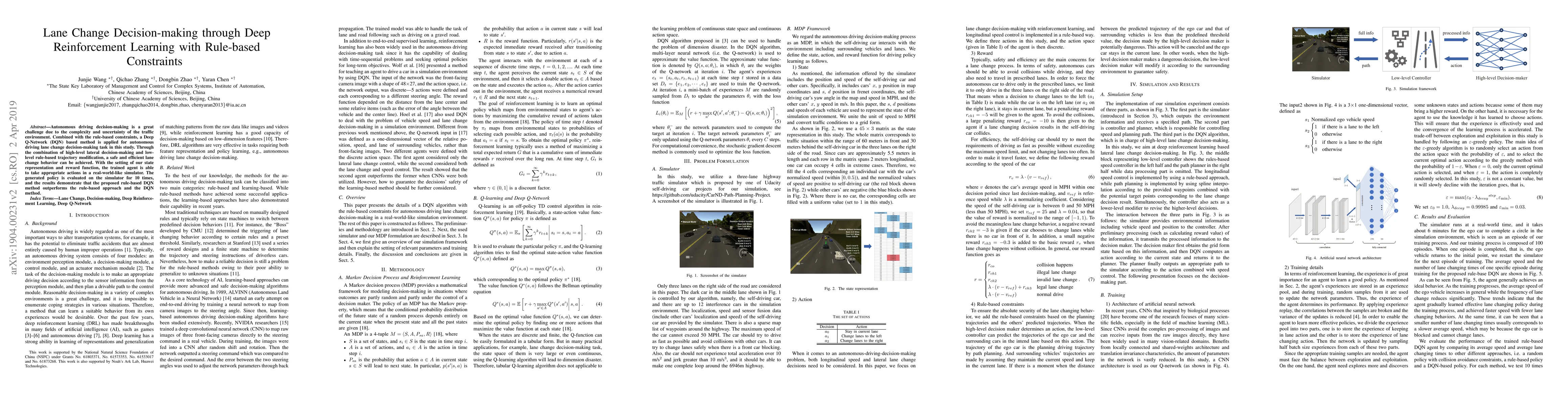 This paper proposes a Deep Q-Network (DQN) method combined with rule-based constraints for autonomous vehicle lane change decision-making, achieving safe and efficient lane changes. The approach outperforms standalone rule-based and DQN methods in a simulator-based evaluation.