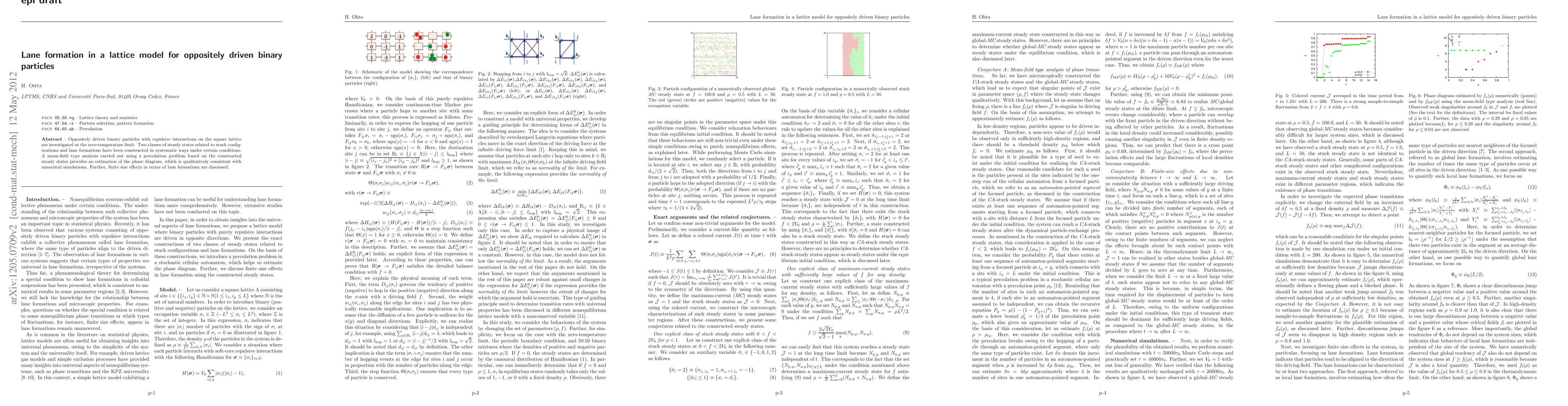 This paper investigates the behavior of oppositely driven binary particles on a square lattice at zero temperature, identifying two steady states: stuck configurations and lane formations. A mean-field analysis based on percolation theory estimates the phase diagram, aligning with numerical simulations, and discusses finite size effects on lane formations.