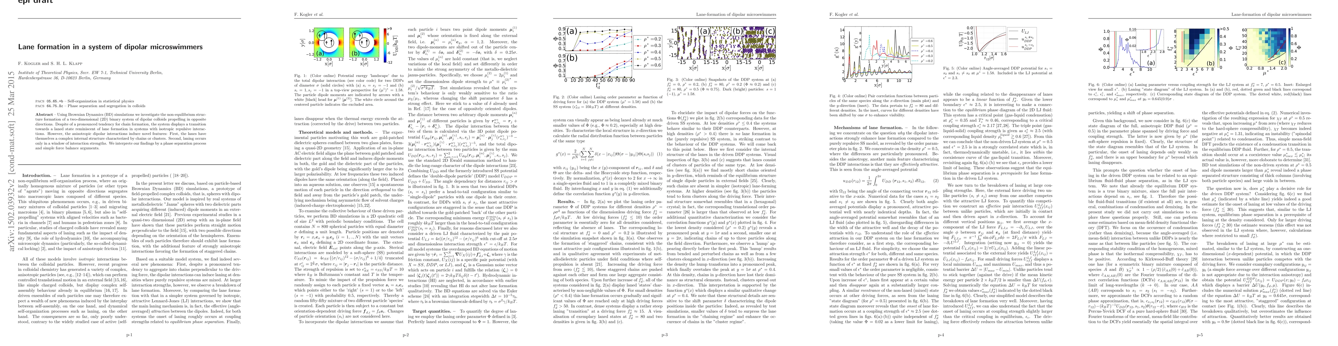 Using Brownian Dynamics (BD) simulations we investigate the non-equilibrium structure formation of a two-dimensional (2D) binary system of dipolar colloids propelling in opposite directions. Despite of a pronounced tendency for chain formation, the system displays a transition towards a laned state reminiscent of lane formation in systems with isotropic repulsive interactions. However, the anisotropic dipolar interactions induce novel features: First, the lanes have themselves a complex internal structure characterized by chains or clusters. Second, laning occurs only in a window of interaction strengths. We interprete our findings by a phase separation process and simple force balance arguments.