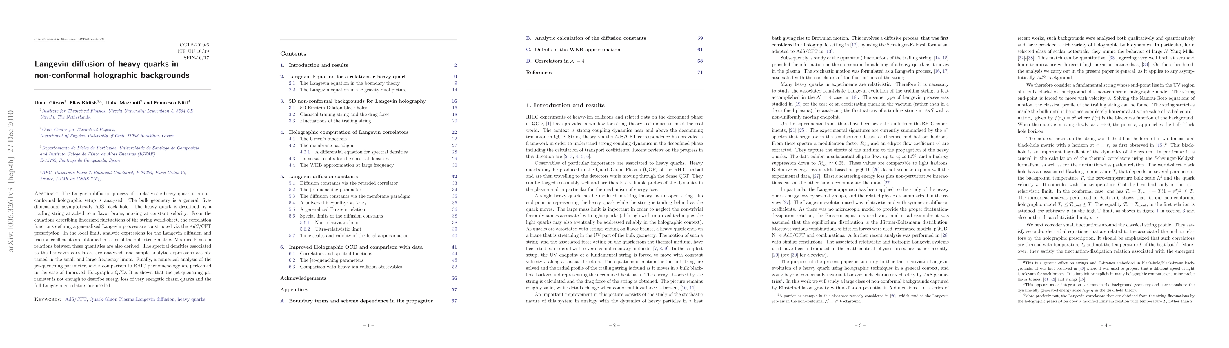 The Langevin diffusion process of a relativistic heavy quark in a non-conformal holographic setup is discussed. The bulk geometry is a general, five-dimensional asymptotically AdS black hole. The heavy quark is described by a trailing string attached to a flavor brane, moving at constant velocity. From the equations describing linearized fluctuations of the string world-sheet, the correlation functions defining a generalized Langevin process are constructed via the AdS/CFT prescription. In the local limit, analytic expressions for the Langevin diffusion and friction coefficients are obtained in terms of the bulk string metric. Modified Einstein relations between these quantities are also derived. The spectral densities associated to the Langevin correlators are analyzed, and simple analytic expressions are obtained in the small and large frequency limits. Finally, a numerical analysis of the jet-quenching parameter, and a comparison to RHIC phenomenology are performed in the case of Improved Holographic QCD.