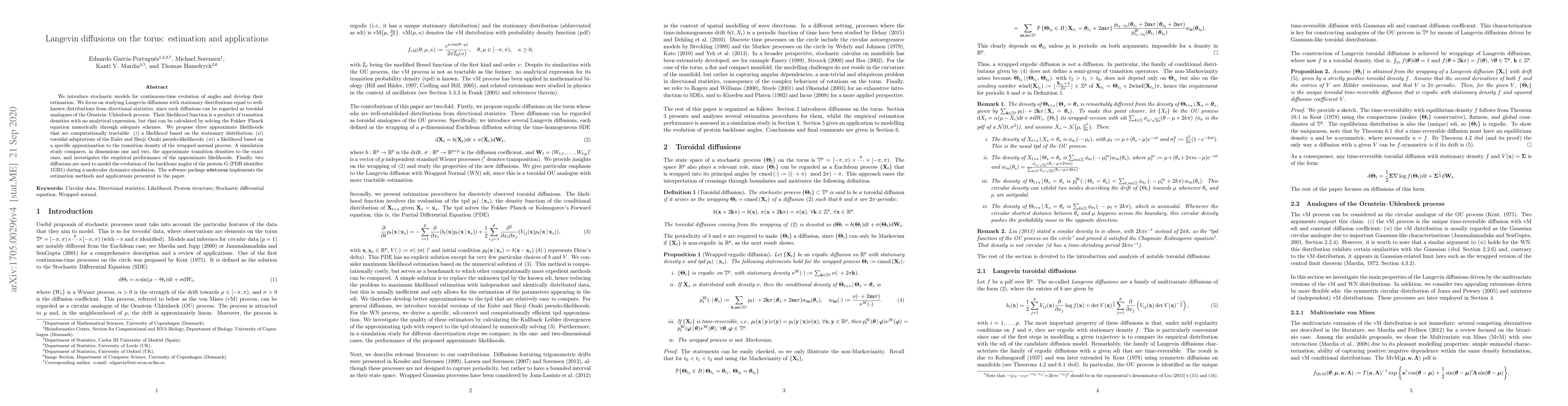 This paper introduces new methods for estimating angles on a torus using Langevin diffusions, and applies these to model the evolution of protein backbone angles during molecular dynamics simulations.