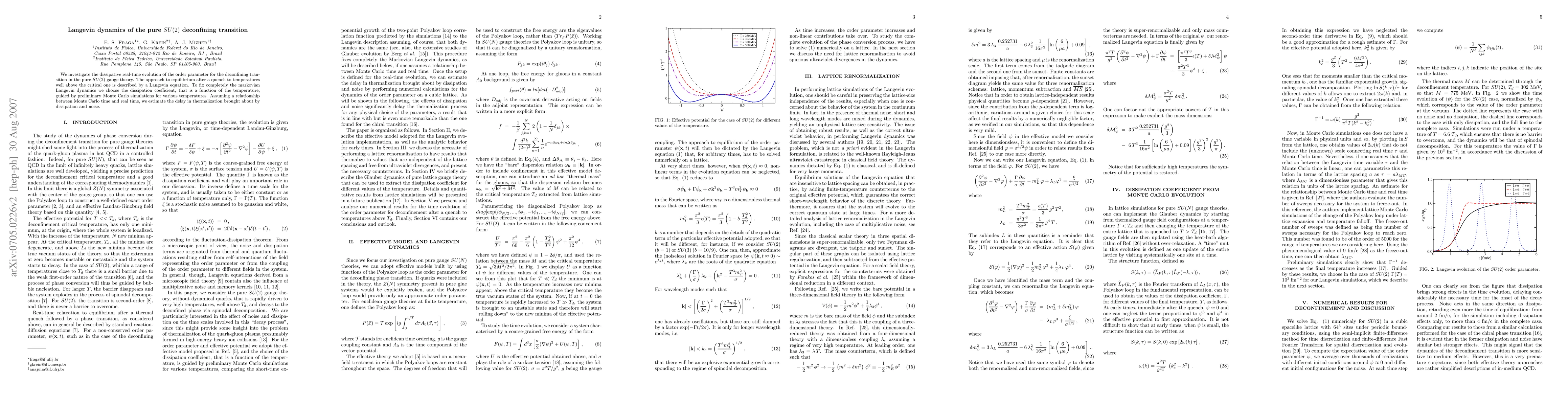 This paper studies the real-time dynamics of the order parameter during the deconfining transition in pure SU(2) gauge theory using Langevin dynamics, guided by Monte Carlo simulations to determine the dissipation coefficient. The study estimates the thermalization delay due to dissipation and noise following a temperature quench.