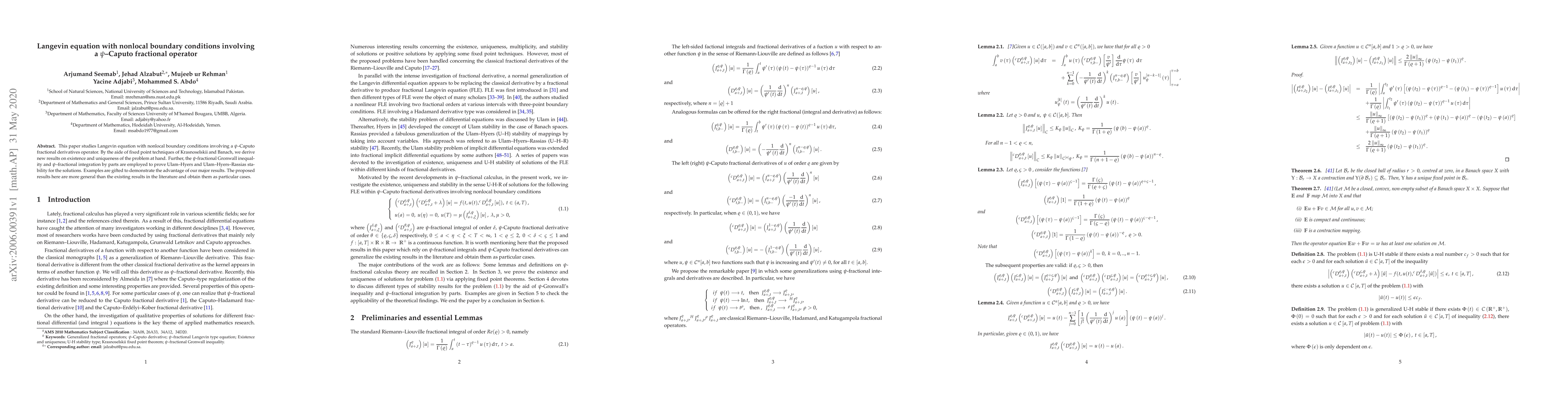 This paper investigates the Langevin equation with nonlocal boundary conditions using a $\psi$-Caputo fractional derivative operator, proving existence and uniqueness via Krasnoselskii and Banach fixed point theorems. The study also establishes Ulam-Hyers and Ulam-Hyers-Rassias stability for the solutions using $\psi$-fractional inequalities.