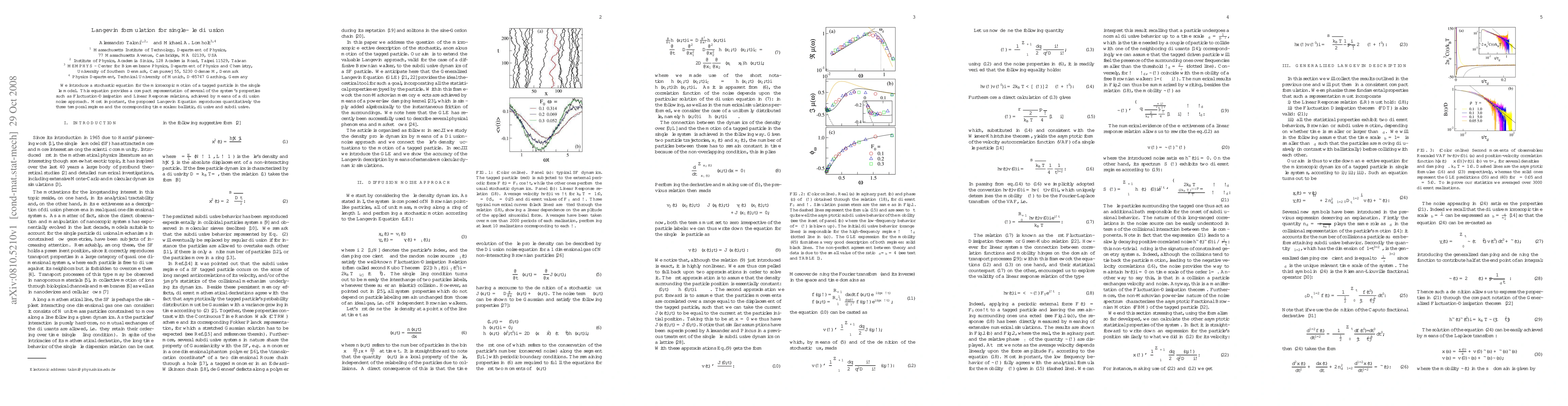 The paper introduces a stochastic Langevin equation for single-file diffusion, capturing Fluctuation-Dissipation and Linear Response relations, and accurately reproducing three temporal regimes: ballistic, diffusive, and subdiffusive.