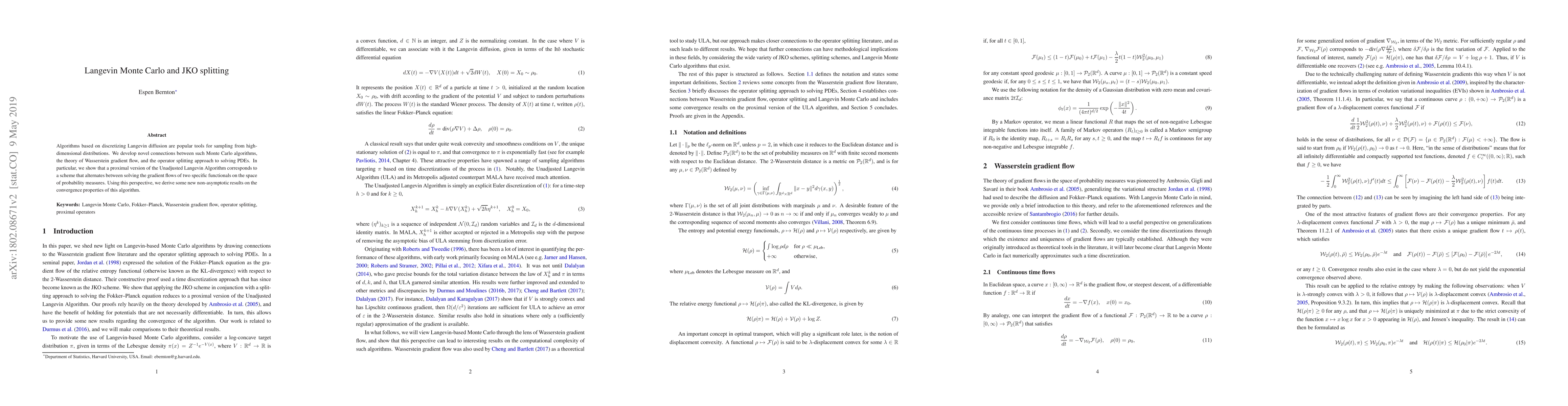 This paper establishes novel links between Langevin Monte Carlo algorithms, Wasserstein gradient flow, and operator splitting methods for PDEs. It shows that a proximal version of the Unadjusted Langevin Algorithm can be viewed as an alternating scheme solving gradient flows of specific functionals, leading to new non-asymptotic convergence results.