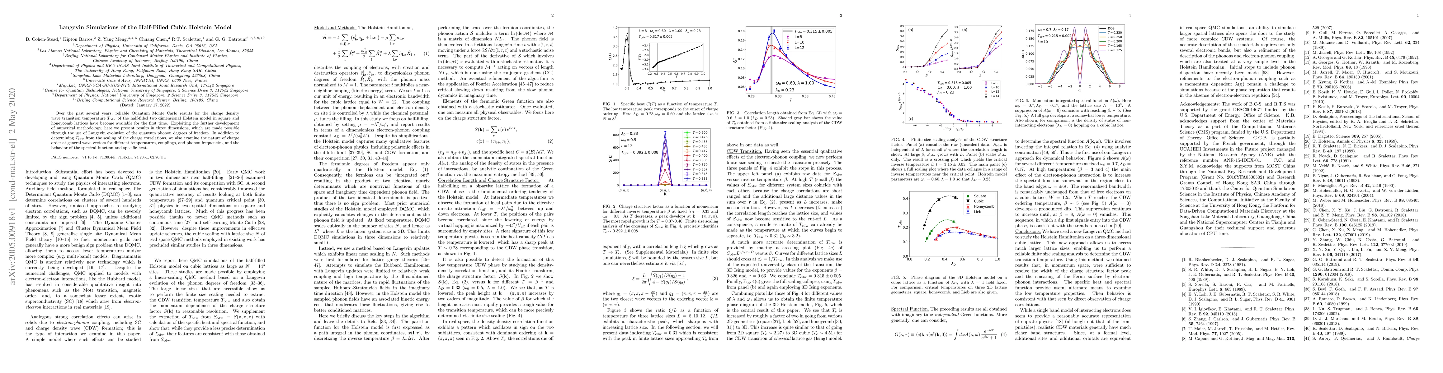 Over the past several years, reliable Quantum Monte Carlo results for the charge density wave transition temperature $T_{cdw}$ of the half-filled two dimensional Holstein model in square and honeycomb lattices have become available for the first time. Exploiting the further development of numerical methodology, here we present results in three dimensions, which are made possible through the use of Langevin evolution of the quantum phonon degrees of freedom. In addition to determining $T_{cdw}$ from the scaling of the charge correlations, we also examine the nature of charge order at general wave vectors for different temperatures, couplings, and phonon frequencies, and the behavior of the spectral function and specific heat.