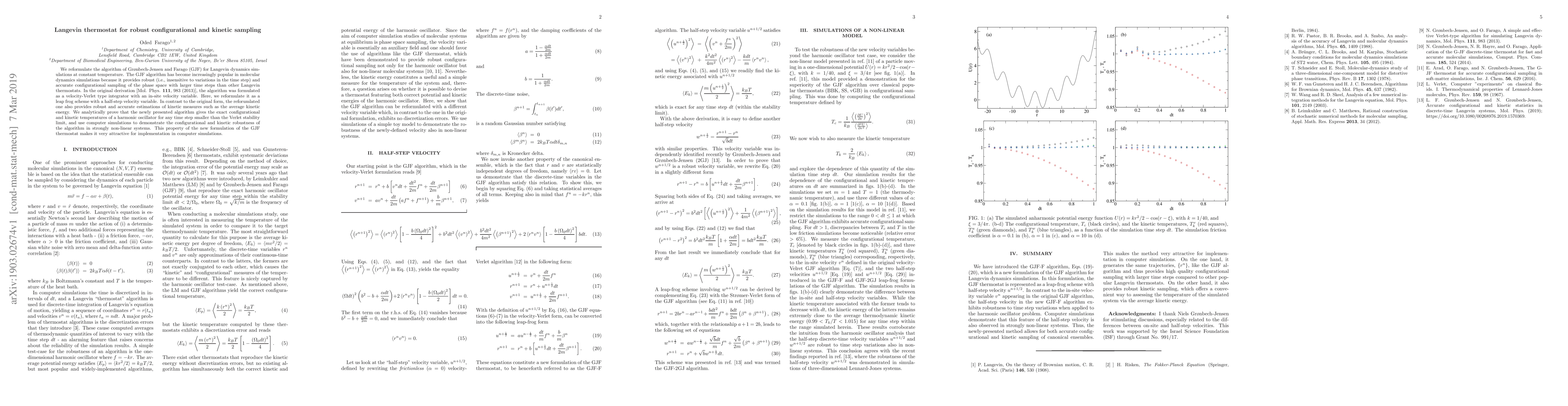 This paper reformulates the GJF algorithm for Langevin dynamics to provide robust configurational and kinetic sampling. The new leap frog scheme with a half-step velocity variable maintains accuracy and robustness for larger time steps, offering exact temperature estimations for harmonic oscillators and demonstrating robustness in non-linear systems.