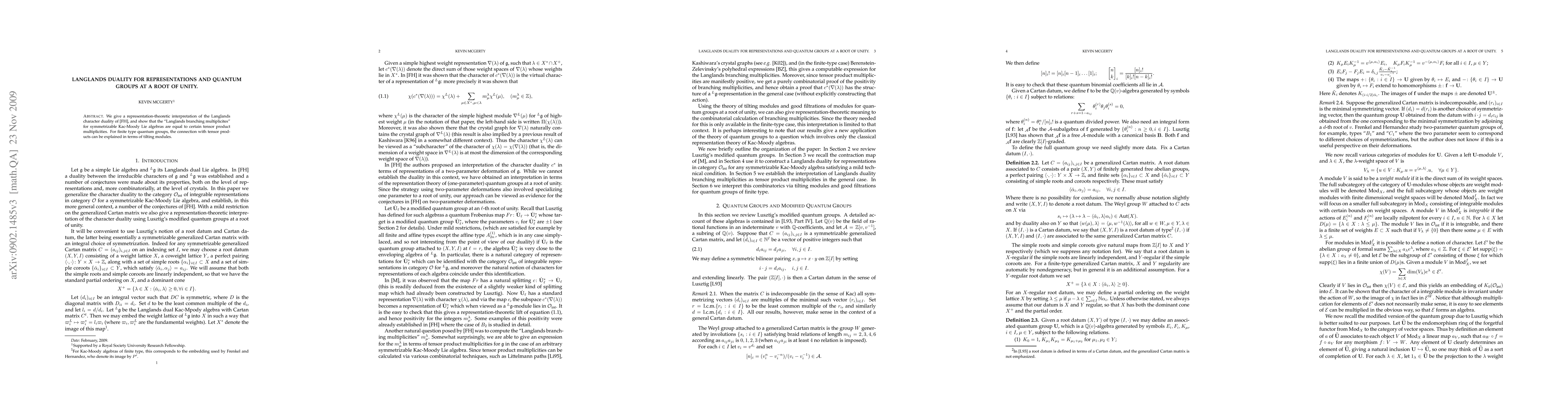 The paper establishes a representation-theoretic interpretation of Langlands character duality for symmetrizable Kac-Moody Lie algebras, showing that the branching multiplicities can be explained by tensor product multiplicities, especially through tilting modules in finite type quantum groups.