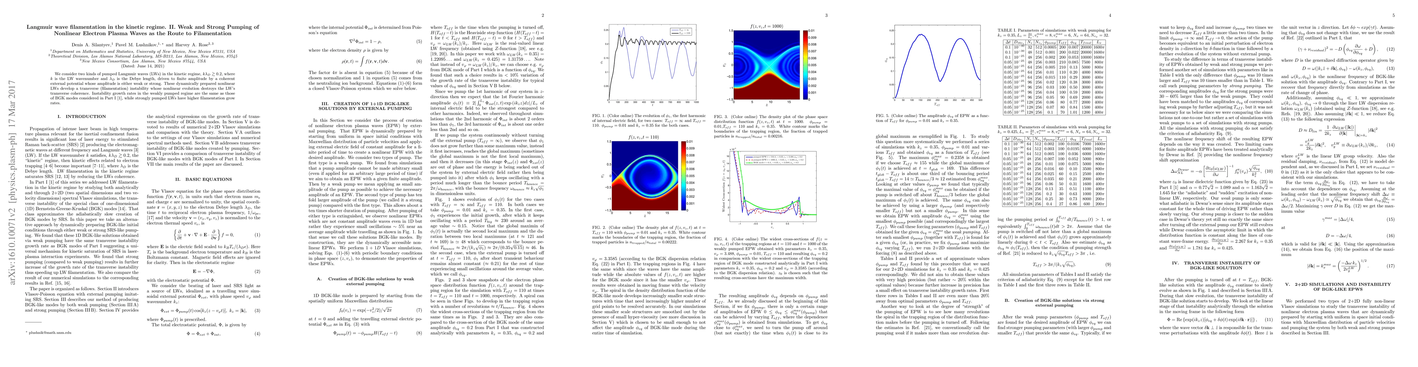 We consider two kinds of pumped Langmuir waves (LWs) in the kinetic regime, $k\lambda_D\gtrsim0.2,$ where $k$ is the LW wavenumber and $\lambda_D$ is the Debye length. They are driven to finite amplitude by a coherent external potential whose amplitude is either weak or strong. These dynamically prepared nonlinear LWs develop a transverse (filamentation) instability whose nonlinear evolution destroys the LW's transverse coherence. Instability growth rates in the weakly pumped regime are the same as those of BGK modes considered in Part I, while strongly pumped LWs have higher filamentation grow rates.