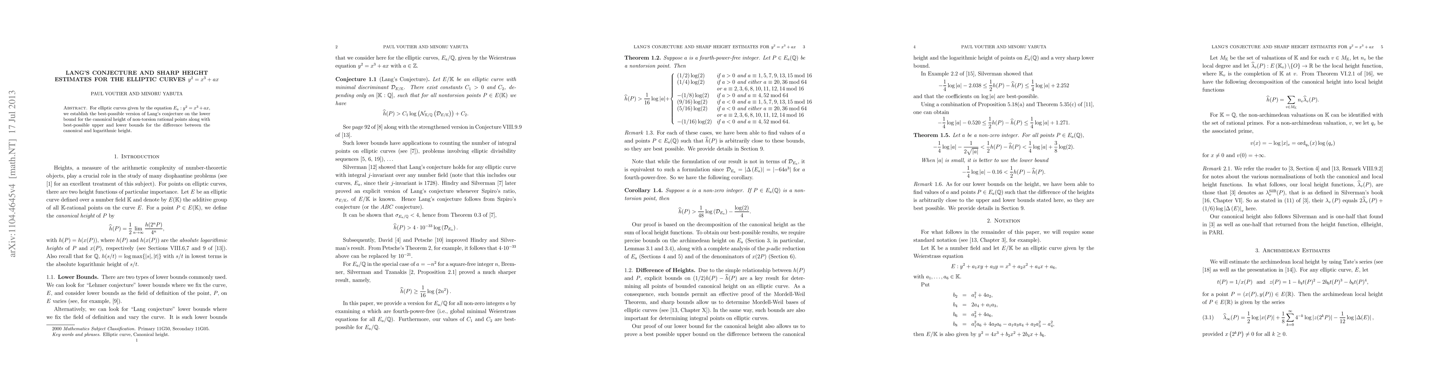 Lang's Conjecture is confirmed for elliptic curves defined by $y^{2}=x^{3}+ax$, providing the optimal lower bound for the canonical height of non-torsion points. Additionally, precise upper and lower bounds for the difference between canonical and logarithmic height are established.