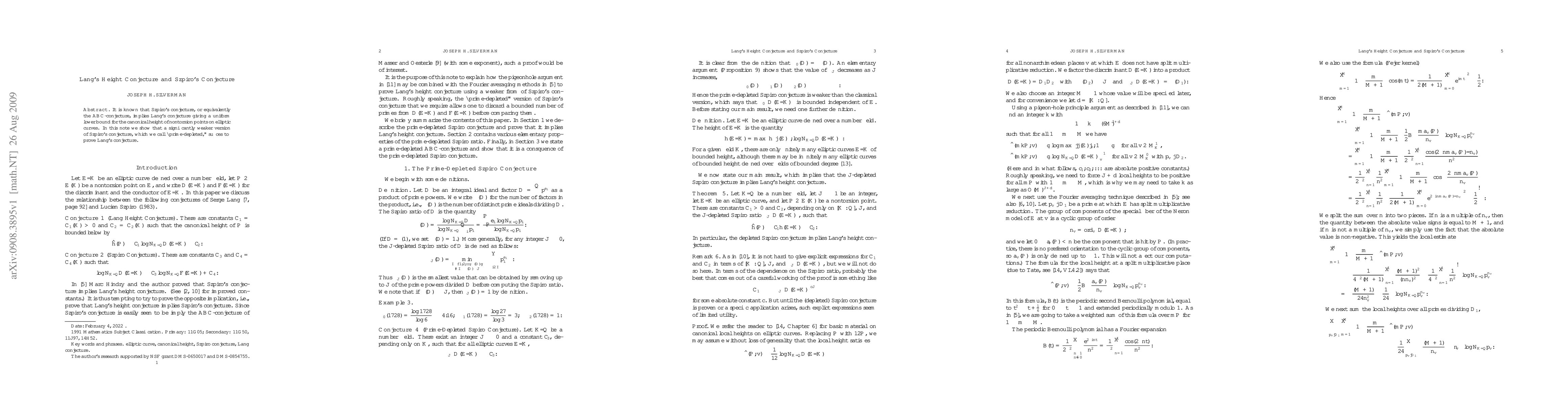 This paper demonstrates that a "prime-depleted" version of Szpiro's conjecture, which excludes certain prime factors, is sufficient to prove Lang's conjecture about the canonical height of nontorsion points on elliptic curves. This finding provides a weaker condition under which Lang's conjecture holds.