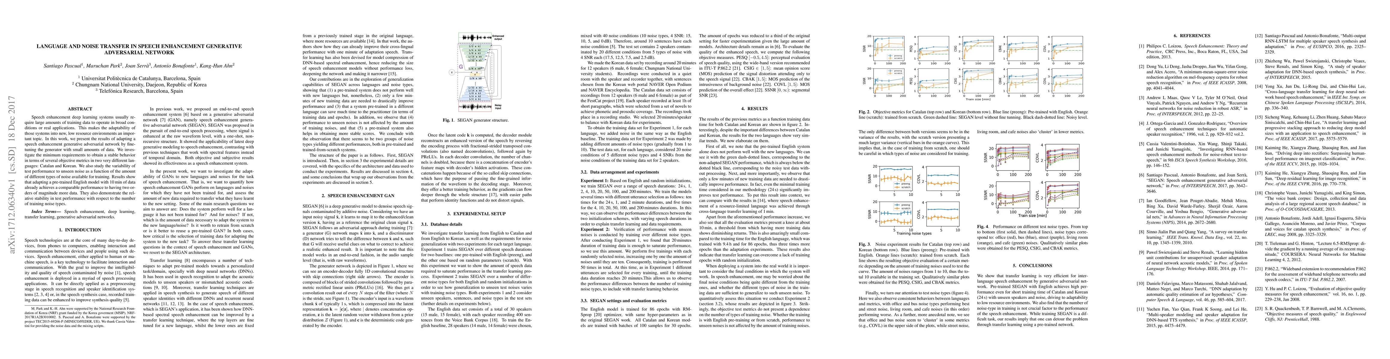 This research adapts a speech enhancement GAN by finetuning its generator with minimal data, achieving comparable performance in Catalan and Korean with only 10 minutes of training data. The study finds stable performance across different noise types, highlighting the model's adaptability to low-resource environments.