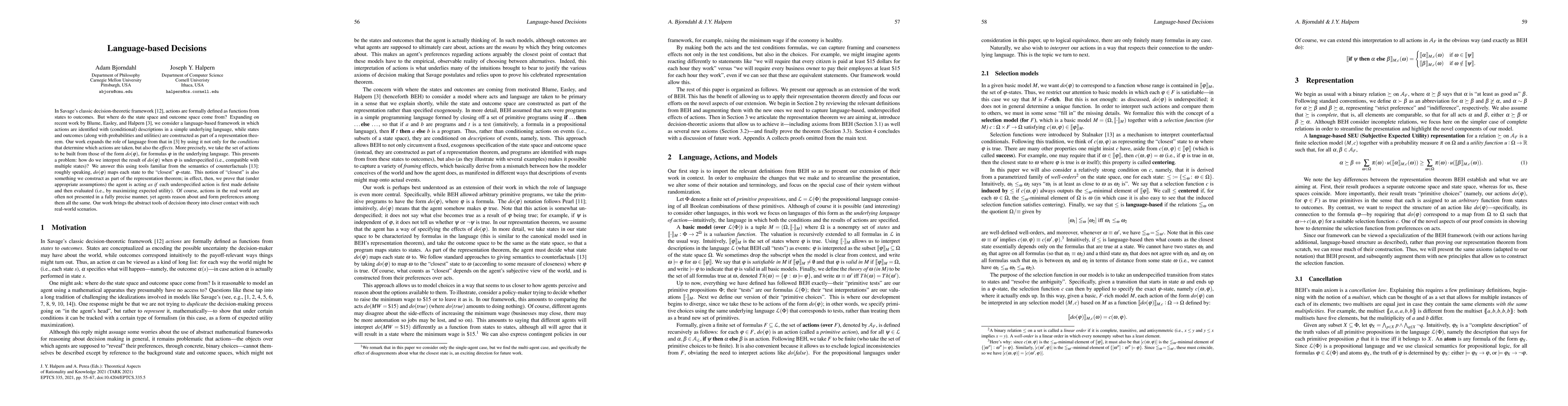 In Savage's classic decision-theoretic framework, actions are formally defined as functions from states to outcomes. But where do the state space and outcome space come from? Expanding on recent work by Blume, Easley, and Halpern (BEH), we consider a language-based framework in which actions are identified with (conditional) descriptions in a simple underlying language, while states and outcomes (along with probabilities and utilities) are constructed as part of a representation theorem. Our work expands the role of language from that of BEH by using it not only for the conditions that determine which actions are taken, but also the effects. More precisely, we take the set of actions to be built from those of the form "do(phi)", for formulas phi in the underlying language. This presents a problem: how do we interpret the result of do(phi) when phi is underspecified (i.e., compatible with multiple states)? We answer this using tools familiar from the semantics of counterfactuals: roughly speaking, do(phi) maps each state to the "closest" phi-state. This notion of "closest" is also something we construct as part of the representation theorem; in effect, then, we prove that (under appropriate assumptions) the agent is acting as if each underspecified action is first made definite and then evaluated (i.e., by maximizing expected utility). Of course, actions in the real world are often not presented in a fully precise manner, yet agents reason about and form preferences among them all the same. Our work brings the abstract tools of decision theory into closer contact with such real-world scenarios.