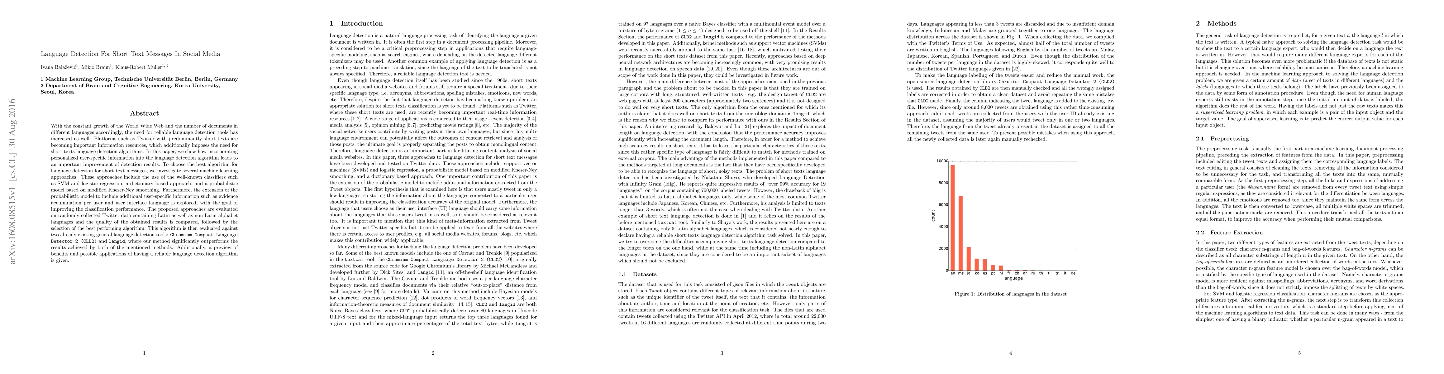 This paper investigates machine learning approaches for detecting languages in short text messages from social media, particularly focusing on Twitter. By incorporating personalized user-specific data, the study finds significant improvements in detection accuracy, outperforming existing general language detection tools like CLD2 and langid.