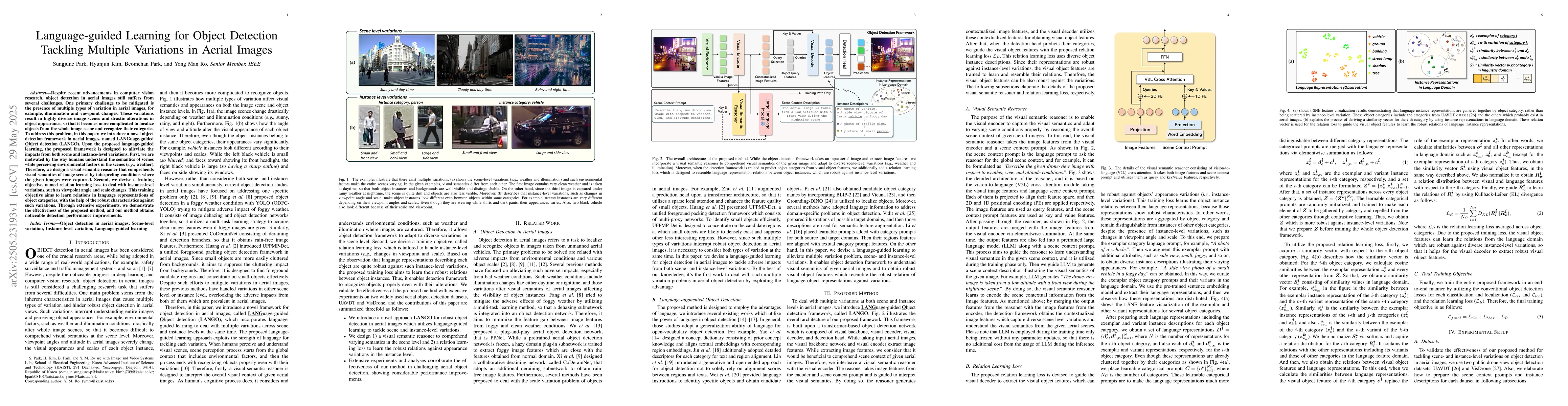 The research introduces LANGO, a novel object detection framework for aerial images that utilizes language-guided learning to address scene and instance-level variations. LANGO comprises a visual semantic reasoner to interpret image capture conditions and a relation learning loss to handle viewpoint and scale changes in object appearances.