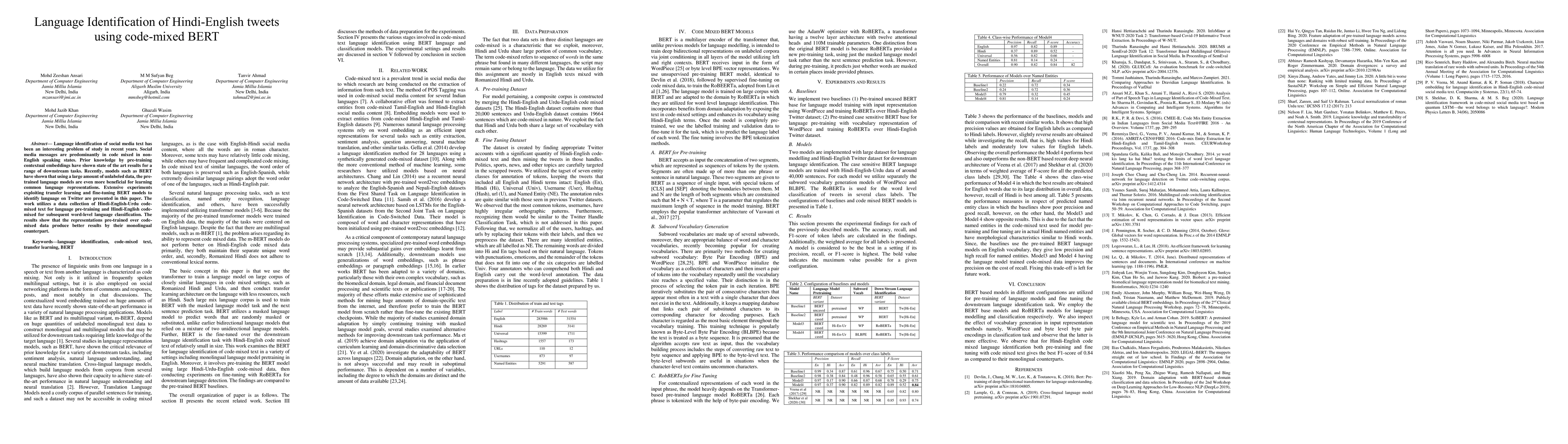 This paper explores the use of BERT for language identification in Hindi-English code-mixed tweets. It demonstrates that pretrained language models trained on large, unlabeled codemixed datasets outperform monolingual models in identifying languages in social media text.
