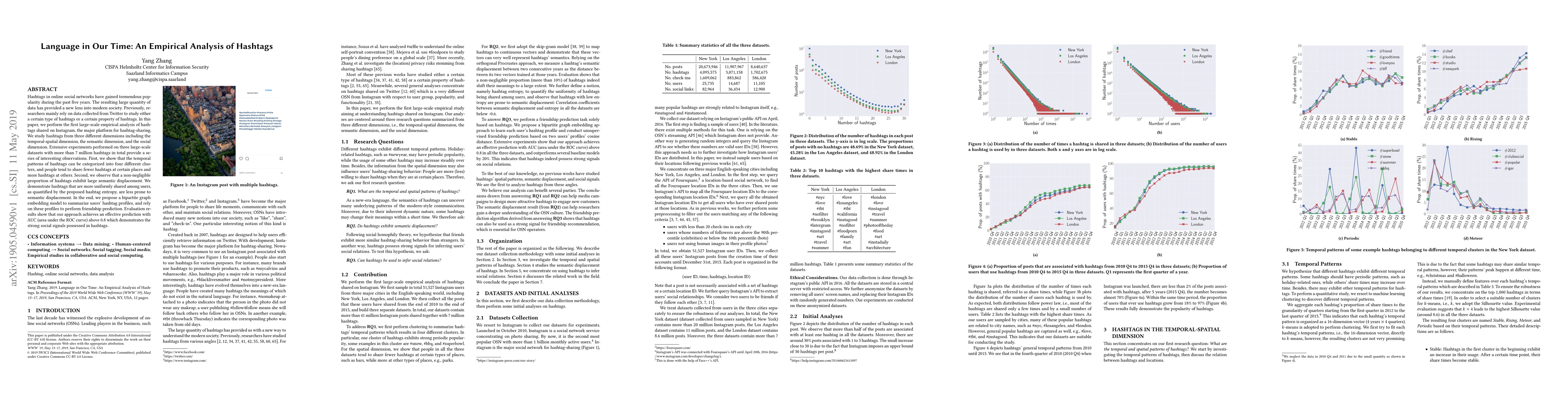 This paper conducts a large-scale empirical analysis of Instagram hashtags, examining temporal-spatial, semantic, and social dimensions. It reveals temporal patterns, semantic displacement, and proposes a model for friendship prediction based on hashtag profiles, achieving high accuracy.