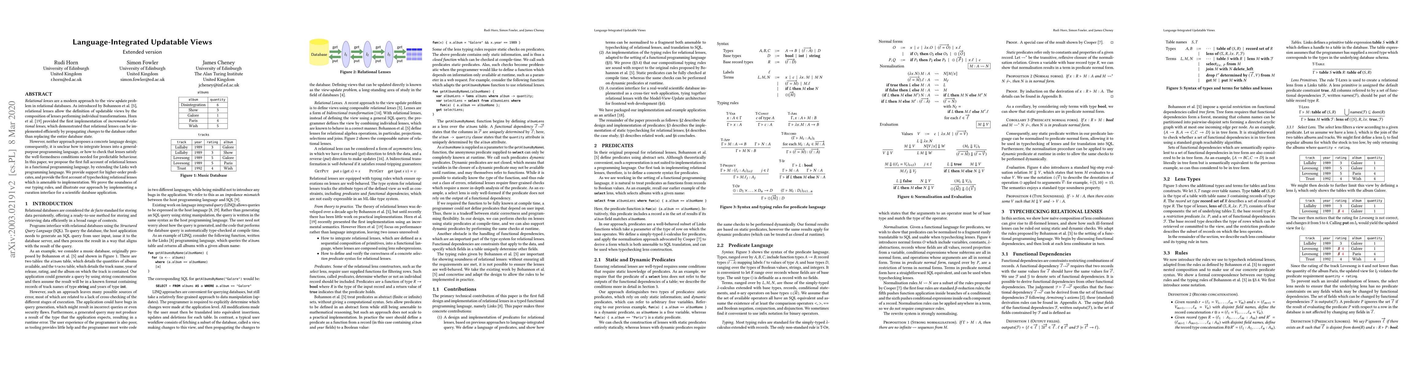 Relational lenses are a modern approach to the view update problem in relational databases. As introduced by Bohannon et al. (2006), relational lenses allow the definition of updatable views by the composition of lenses performing individual transformations. Horn et al. (2018) provided the first implementation of incremental relational lenses, which demonstrated that relational lenses can be implemented efficiently by propagating changes to the database rather than replacing the entire database state. However, neither approach proposes a concrete language design; consequently, it is unclear how to integrate lenses into a general-purpose programming language, or how to check that lenses satisfy the well-formedness conditions needed for predictable behaviour. In this paper, we propose the first full account of relational lenses in a functional programming language, by extending the Links web programming language. We provide support for higher-order predicates, and provide the first account of typechecking relational lenses which is amenable to implementation. We prove the soundness of our typing rules, and illustrate our approach by implementing a curation interface for a scientific database application.