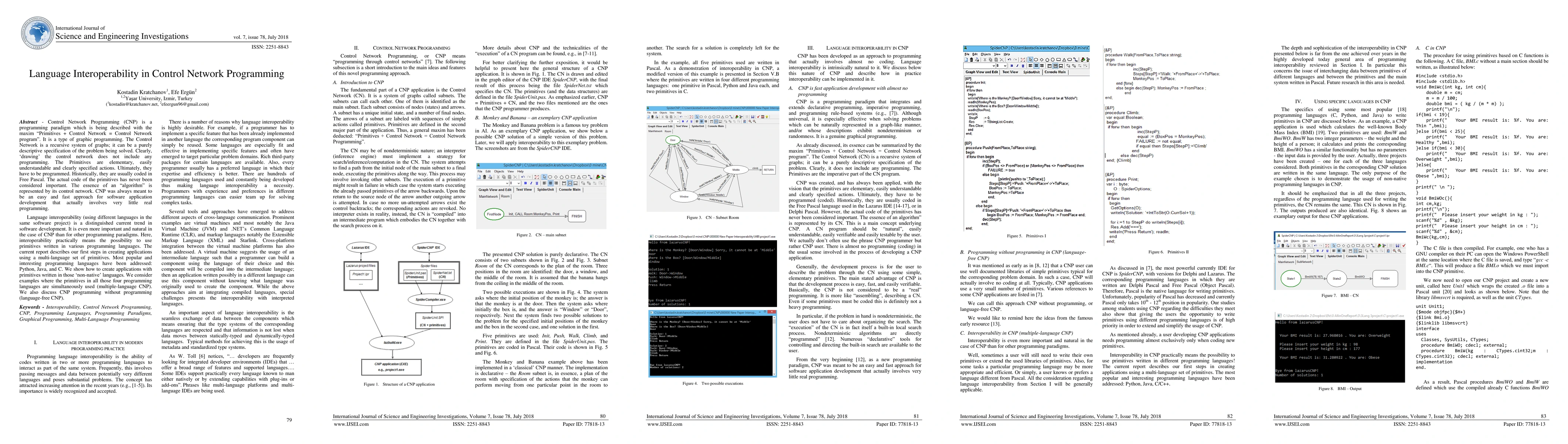 This research explores the concept of Language Interoperability in Control Network Programming (CNP), focusing on integrating primitives from different languages (Python, Java, C) within a single CNP application. The study highlights the potential of multi-language CNP to enhance software development efficiency while maintaining a graphical programming paradigm.