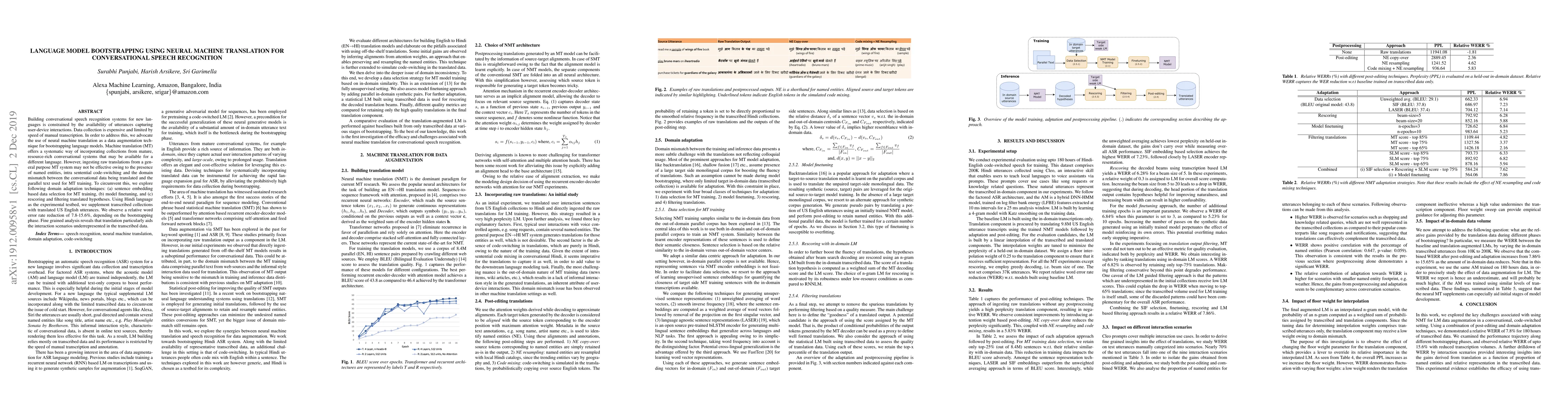 This paper proposes using neural machine translation to augment data for building conversational speech recognition systems in low-resource languages. It employs domain adaptation techniques to improve translation quality and observes a reduction in word error rates, particularly benefiting underrepresented interaction scenarios.