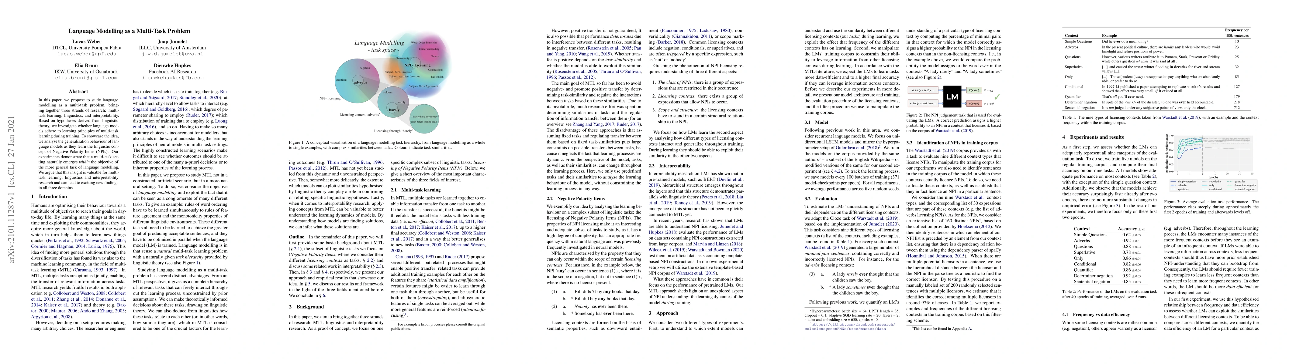 This paper explores language modelling as a multi-task learning problem, integrating insights from linguistics and interpretability. Experiments reveal that language models naturally adopt a multi-task approach, particularly in learning linguistic concepts like Negative Polarity Items, suggesting new avenues for research in multi-task learning and interpretability.