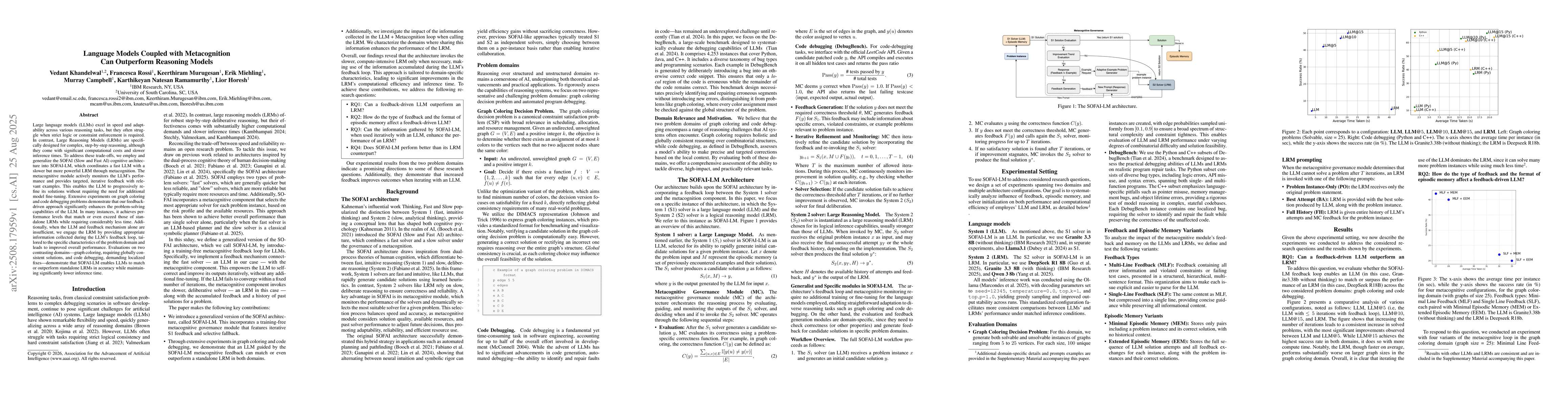 Large language models (LLMs) excel in speed and adaptability across various reasoning tasks, but they often struggle when strict logic or constraint enforcement is required. In contrast, Large Reasoning Models (LRMs) are specifically designed for complex, step-by-step reasoning, although they come with significant computational costs and slower inference times. To address these trade-offs, we employ and generalize the SOFAI (Slow and Fast AI) cognitive architecture into SOFAI-LM, which coordinates a fast LLM with a slower but more powerful LRM through metacognition. The metacognitive module actively monitors the LLM's performance and provides targeted, iterative feedback with relevant examples. This enables the LLM to progressively refine its solutions without requiring the need for additional model fine-tuning. Extensive experiments on graph coloring and code debugging problems demonstrate that our feedback-driven approach significantly enhances the problem-solving capabilities of the LLM. In many instances, it achieves performance levels that match or even exceed those of standalone LRMs while requiring considerably less time. Additionally, when the LLM and feedback mechanism alone are insufficient, we engage the LRM by providing appropriate information collected during the LLM's feedback loop, tailored to the specific characteristics of the problem domain and leads to improved overall performance. Evaluations on two contrasting domains: graph coloring, requiring globally consistent solutions, and code debugging, demanding localized fixes, demonstrate that SOFAI-LM enables LLMs to match or outperform standalone LRMs in accuracy while maintaining significantly lower inference time.