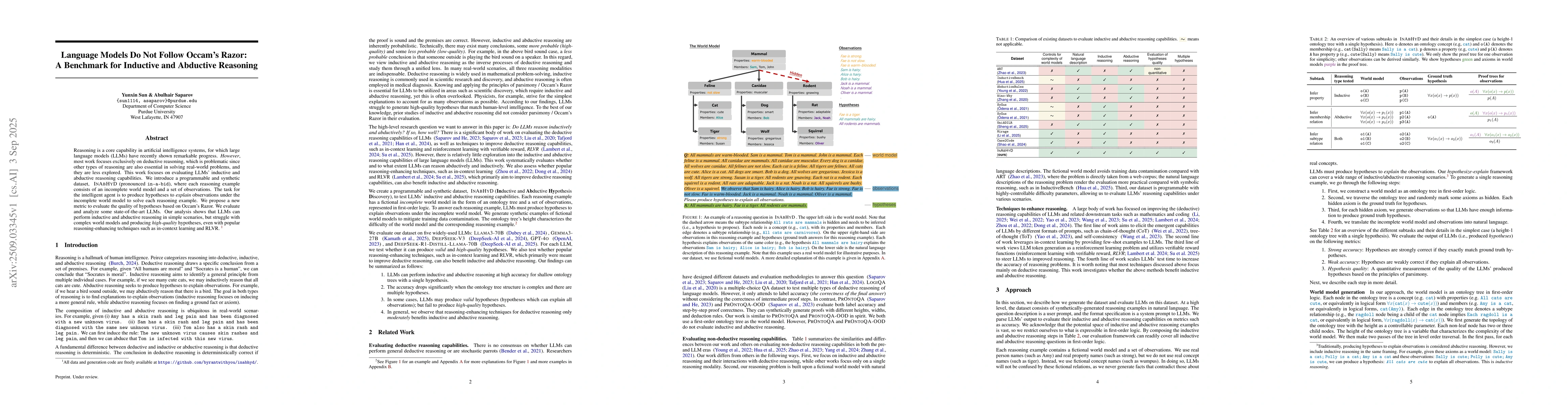 Reasoning is a core capability in artificial intelligence systems, for which large language models (LLMs) have recently shown remarkable progress. However, most work focuses exclusively on deductive reasoning, which is problematic since other types of reasoning are also essential in solving real-world problems, and they are less explored. This work focuses on evaluating LLMs' inductive and abductive reasoning capabilities. We introduce a programmable and synthetic dataset, InAbHyD (pronounced in-a-bid), where each reasoning example consists of an incomplete world model and a set of observations. The task for the intelligent agent is to produce hypotheses to explain observations under the incomplete world model to solve each reasoning example. We propose a new metric to evaluate the quality of hypotheses based on Occam's Razor. We evaluate and analyze some state-of-the-art LLMs. Our analysis shows that LLMs can perform inductive and abductive reasoning in simple scenarios, but struggle with complex world models and producing high-quality hypotheses, even with popular reasoning-enhancing techniques such as in-context learning and RLVR.