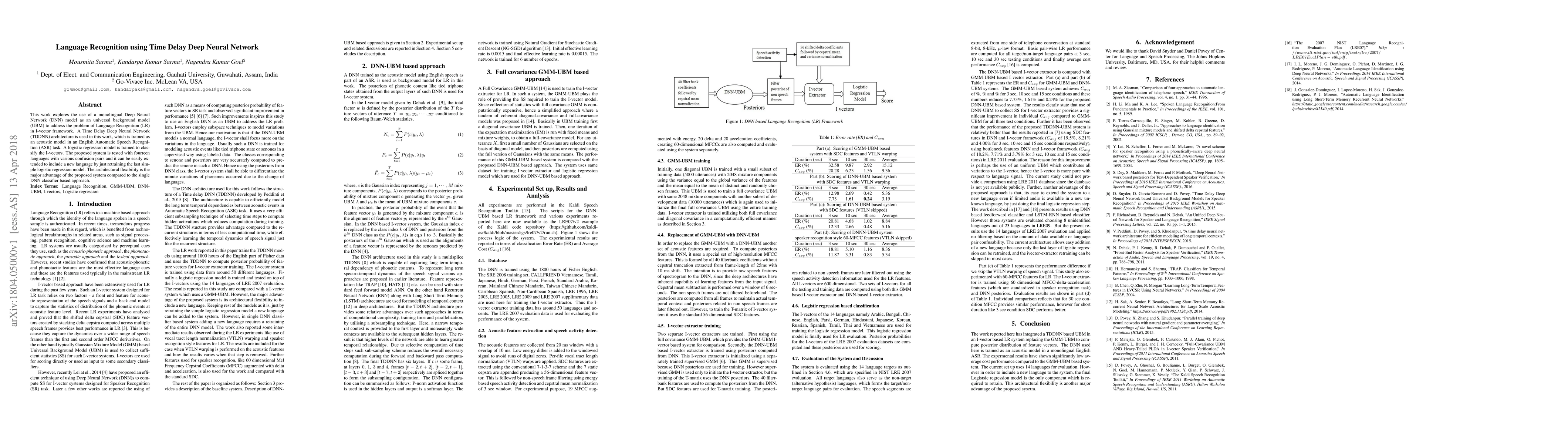 This paper proposes a Time Delay Deep Neural Network (TDDNN) as a universal background model for Language Recognition within the I-vector framework, demonstrating its effectiveness across fourteen languages. The system's flexibility allows for easy inclusion of new languages by retraining a simple logistic regression model.