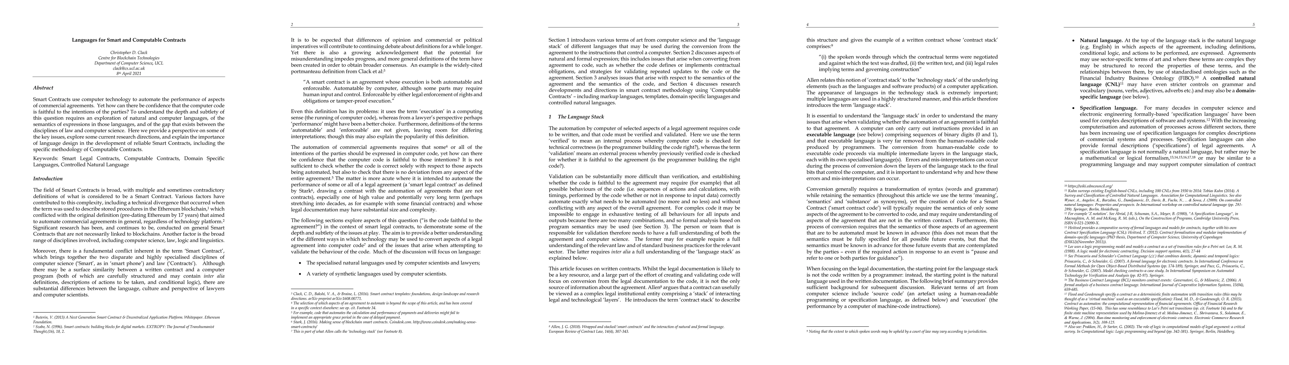 This paper explores the challenges of ensuring the fidelity of smart contracts to the intentions of parties involved, emphasizing the need for a bridge between legal and computer science disciplines. It highlights the significance of language design and the methodology of Computable Contracts in developing reliable smart contracts.
