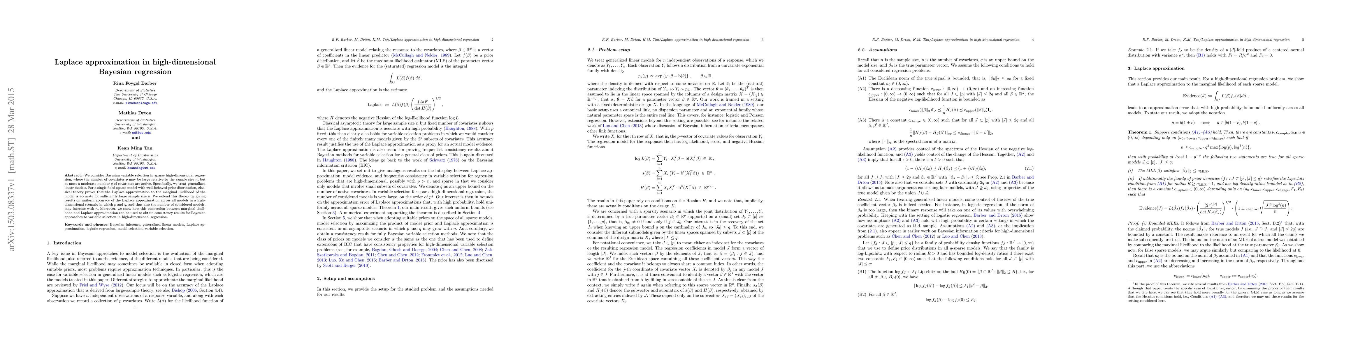This paper explores the Laplace approximation for the marginal likelihood in high-dimensional Bayesian regression, proving its uniform accuracy across models even as the number of covariates grows. It also demonstrates the connection to consistency in Bayesian variable selection methods.