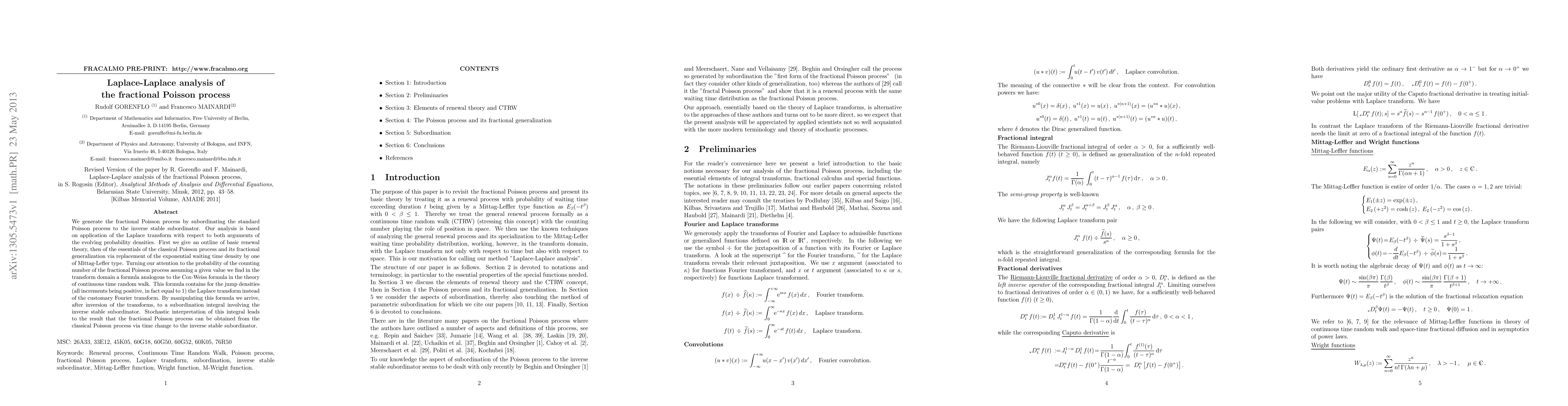 This paper investigates the fractional Poisson process, generated by subordinating the standard Poisson process to an inverse stable subordinator, and employs Laplace-Laplace analysis to study the evolving probability densities.