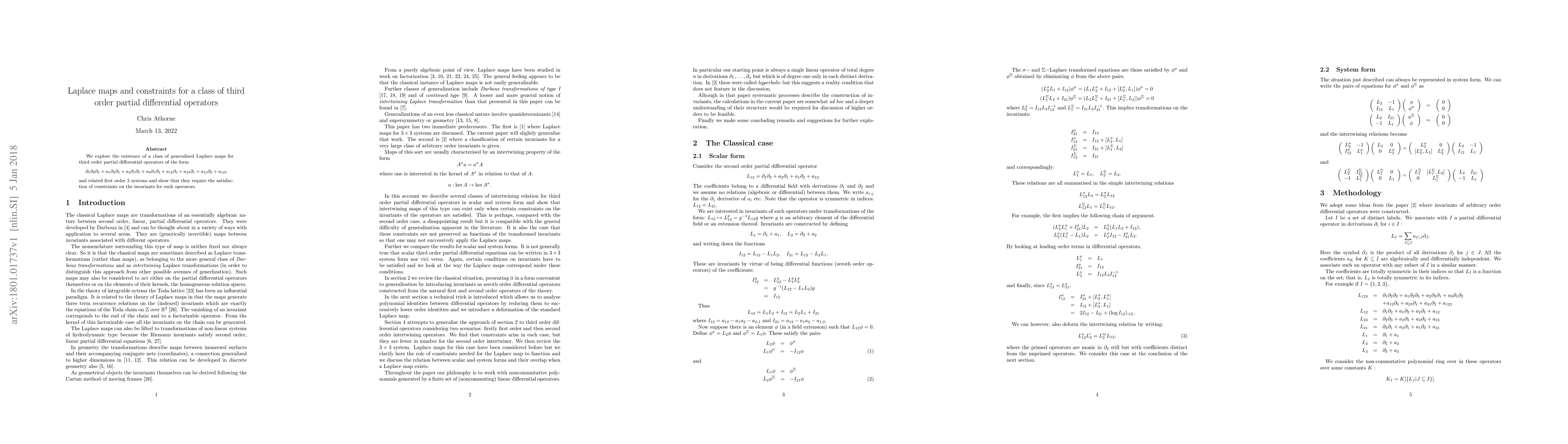 We explore the existence of a class of generalised Laplace maps for third order partial differential operators of the form \[\partial_1\partial_2\partial_3+a_1\partial_2\partial_3+a_2\partial_1\partial_3+a_3\partial_1\partial_2+a_{12}\partial_3+a_{23}\partial_1+a_{13}\partial_2+a_{123}\] and related first order $3\time 3$ systems and show that they require the satisfaction of constraints on the invariants for such operators.