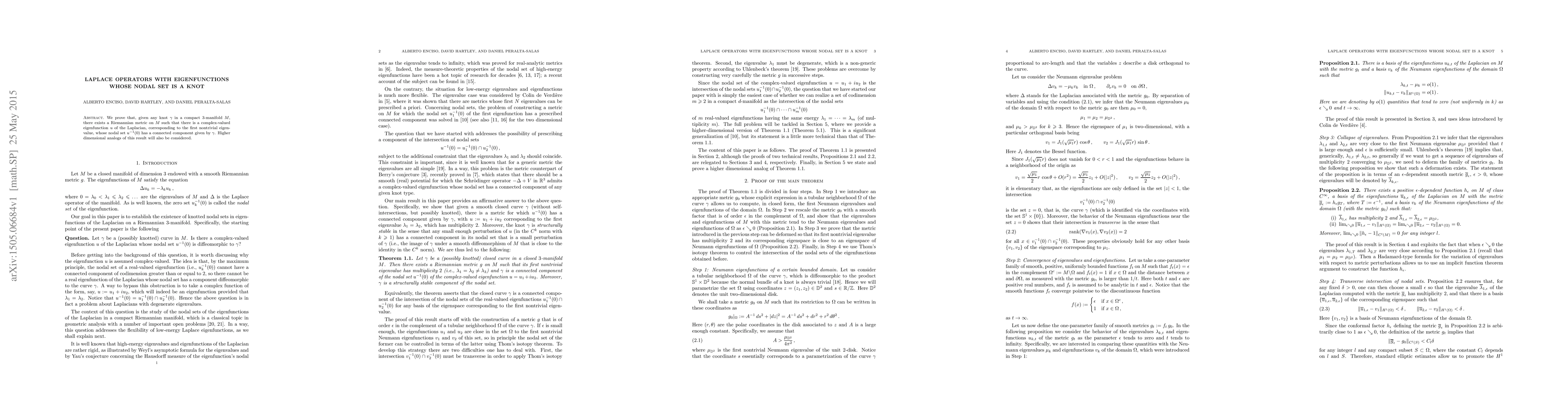 We prove that, given any knot $\gamma$ in a compact 3-manifold M, there exists a Riemannian metric on M such that there is a complex-valued eigenfunction u of the Laplacian, corresponding to the first nontrivial eigenvalue, whose nodal set $u^{-1}(0)$ has a connected component given by $\gamma$. Higher dimensional analogs of this result will also be considered.