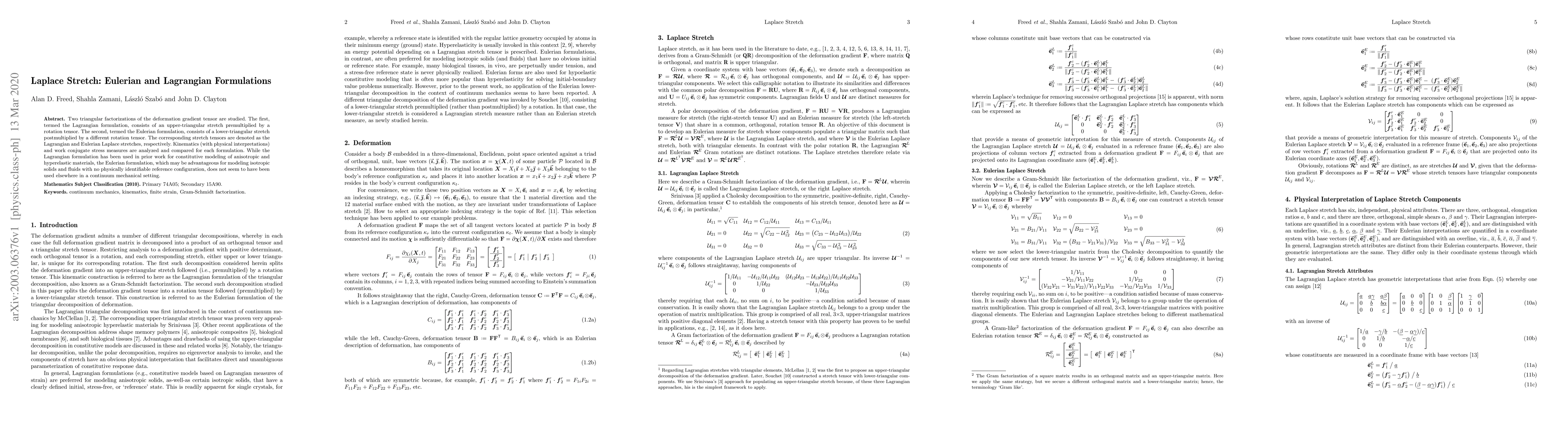 A Lagrangian-based approach was used to develop a triangular decomposition of deformation for homogeneous deformations.